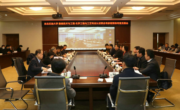我校勘查技术与工程专业、化学工程与工艺专业负责人从学生、 培养目标、毕业要求、持续改进、课程体系、师资队伍、支持条件等方面对自评报告中未能说明的情况作了汇报。学院及相关职能部门负责人在会上就专家组提出的问题作了解答。