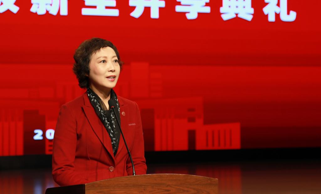 新生代表、计算机与信息技术学院楚佳欣,在校生代表、地球科学学院李麓祺,教师代表、全国优秀教师、人文科学学院教授颜冰分别在典礼上发言。