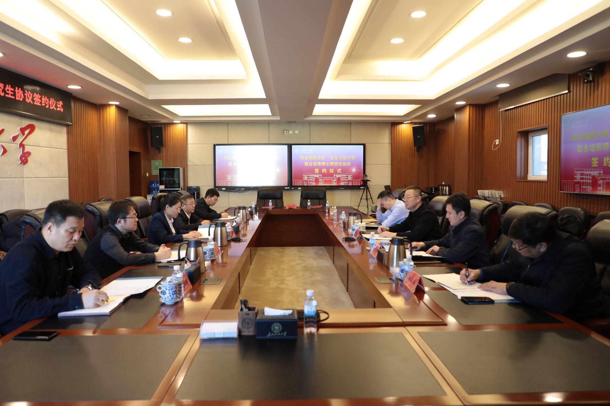(记者/摄影 周宏)1月14日,我校与河北地质大学在机关五楼会议室举行联合培养博士研究生协议签约仪式。河北地质大学校长任家东及相关部门负责人,我校校长董宏丽、副校长杨二龙及相关部门负责人参加仪式。董宏丽主持。