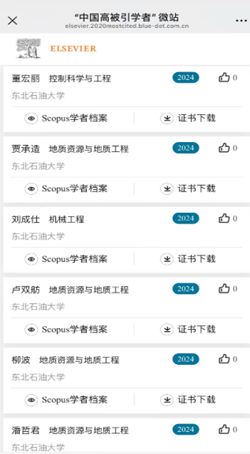 我校多位教授荣登榜单。控制科学与工程学科董宏丽教授,地质资源与地质工程学科贾承造院士、卢双舫教授、柳波教授、潘哲君教授,机械工程学科刘成仕教授,以及石油与天然气工程学科张彬林教授(于2025年1月由山东科技大学入职我校)成功入选,覆盖四大重点学科领域,彰显了我校在能源领域的科研实力。