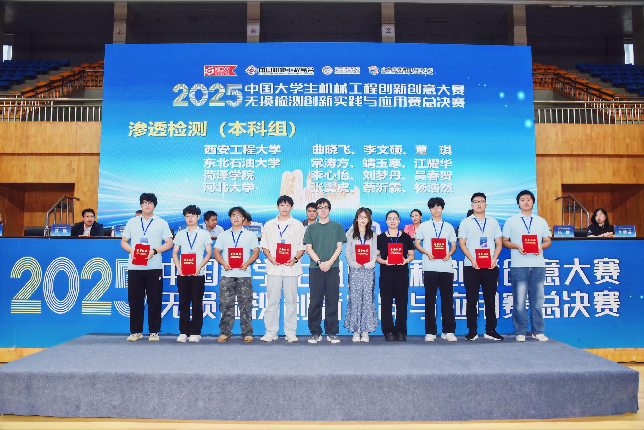 在机械科学与工程学院安全工程系副主任徐海丰的带队指导下,我校学子展现了扎实的专业功底和沉着冷静的竞技状态。经过激烈角逐,1支队伍获超声组全国二等奖,2支队伍获渗透组全国二等奖,充分展现了我校在无损检测核心技能人才培养方面的深厚实力。