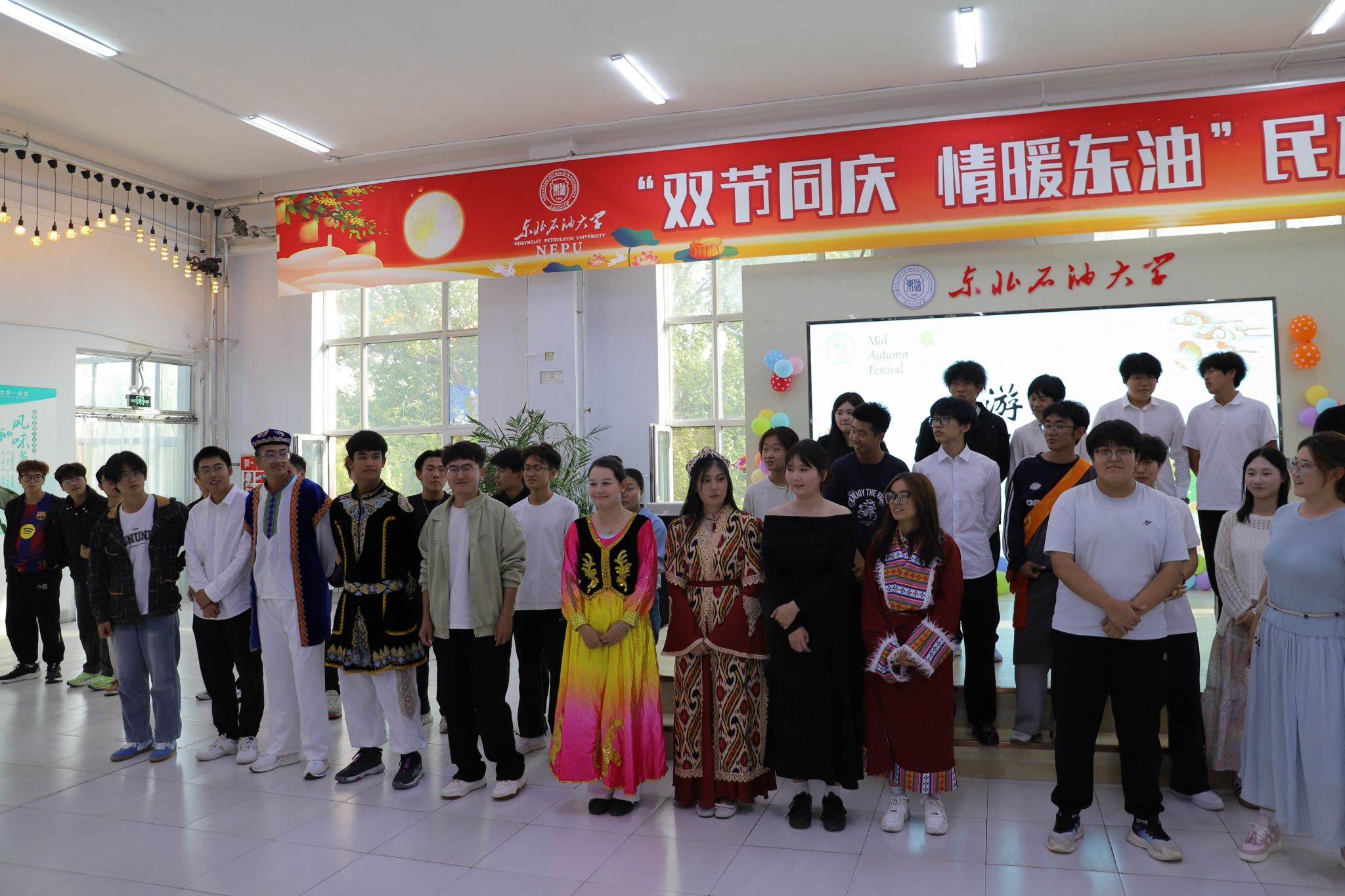 (通讯员 赵瑛杰 记者 胡玉喆)为铸牢中华民族共同体意识,传承弘扬中华优秀传统文化,厚植师生爱国情怀,9月27日,我校“东油同心·石榴红”民族团结进步教育辅导员工作室在第一食堂举办“双节同庆,情暖东油”民族团结进步主题活动。校党委宣传部、学生工作部和后勤管理处相关领导应邀参加,活动吸引来自不同国家、不同民族的150余名师生参与。