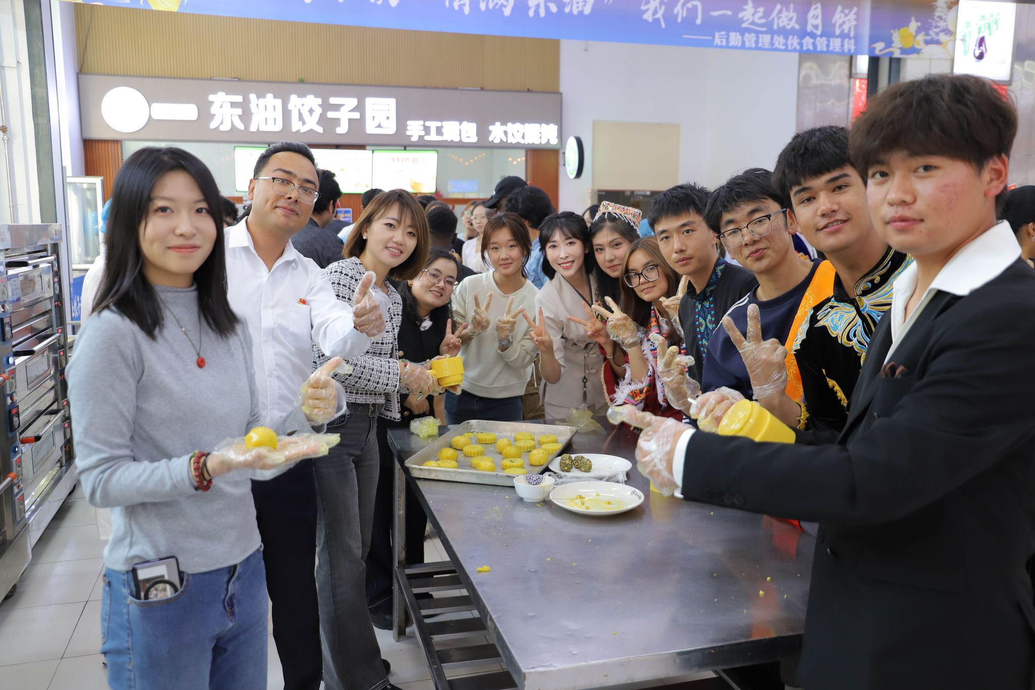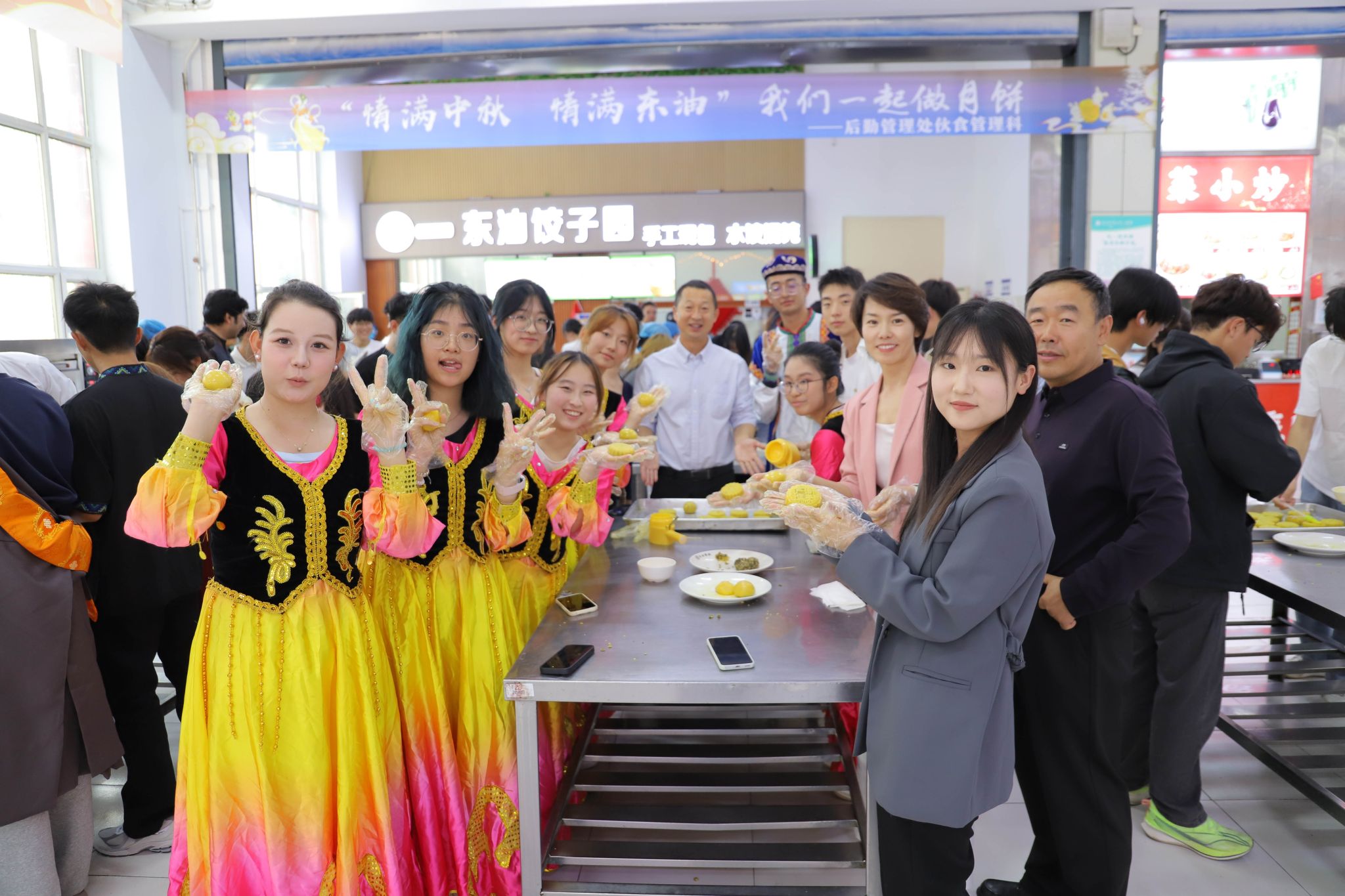 “中秋月饼制作”体验环节温情满满。专业糕点师现场指导,师生共同制作并品尝了印有“情满东油”“艰苦创业”“严谨治学”等字样的月饼,在手工实践中感受传统节日氛围,传递校园温情。