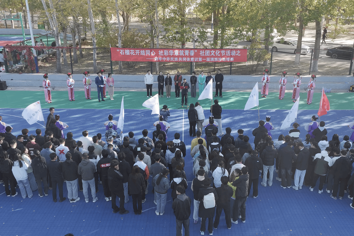 (通讯员 王书婷 记者/摄影 周宏 王玥琪)在“石榴花开结同心携手共筑中国梦”民族团结进步宣传月开展之际,10月12日上午,“石榴花开结同心社彩华章筑青春”社团文化节系列活动之第一届满族珍珠球比赛开幕式在篮球场举行。校党委副书记高洪峰,校党委常委、宣传部部长徐清亮,学生工作部、团委负责人,各参赛代表队、裁判员、工作人员及师生代表参加。