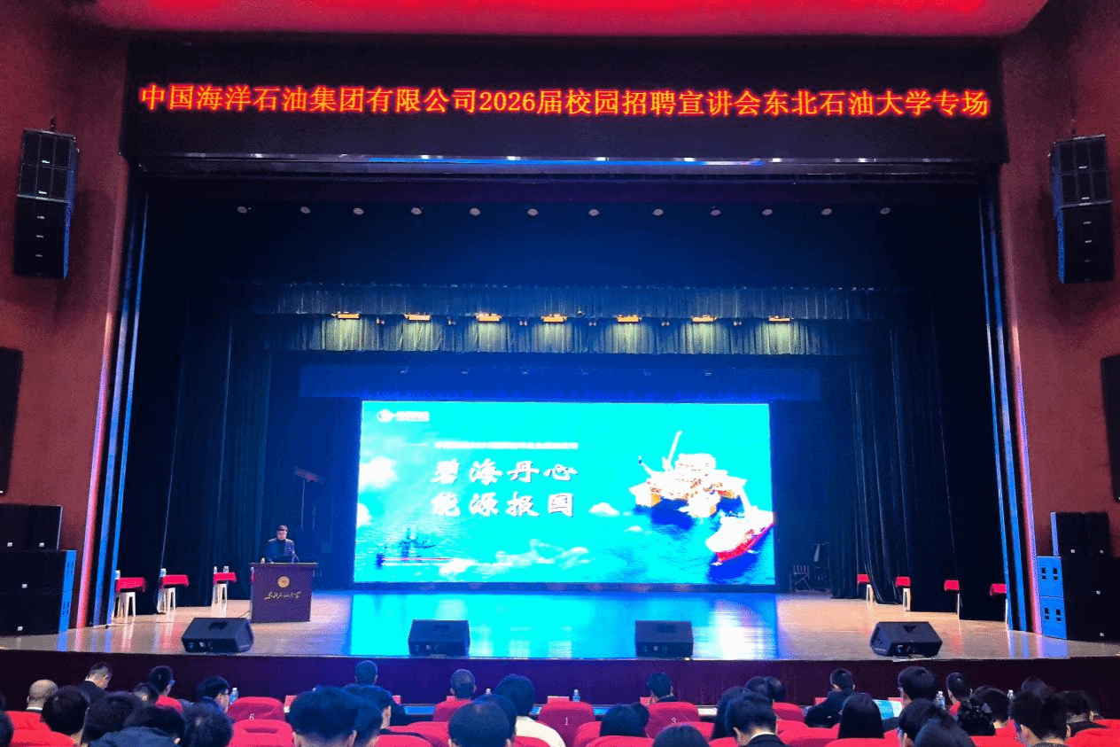 (记者 胡玉喆)为全面贯彻落实党中央、国务院“稳就业”“保就业”决策部署,搭建央企与高校人才对接桥梁,助力2026届毕业生精准把握就业机遇,10月11日下午,中国海洋石油集团有限公司2026届校园招聘会在我校音乐厅举行。校党委副书记、工会主席于长青,中海油研究总院有限责任公司党委副书记、工会主席秦文刚出席活动并讲话。