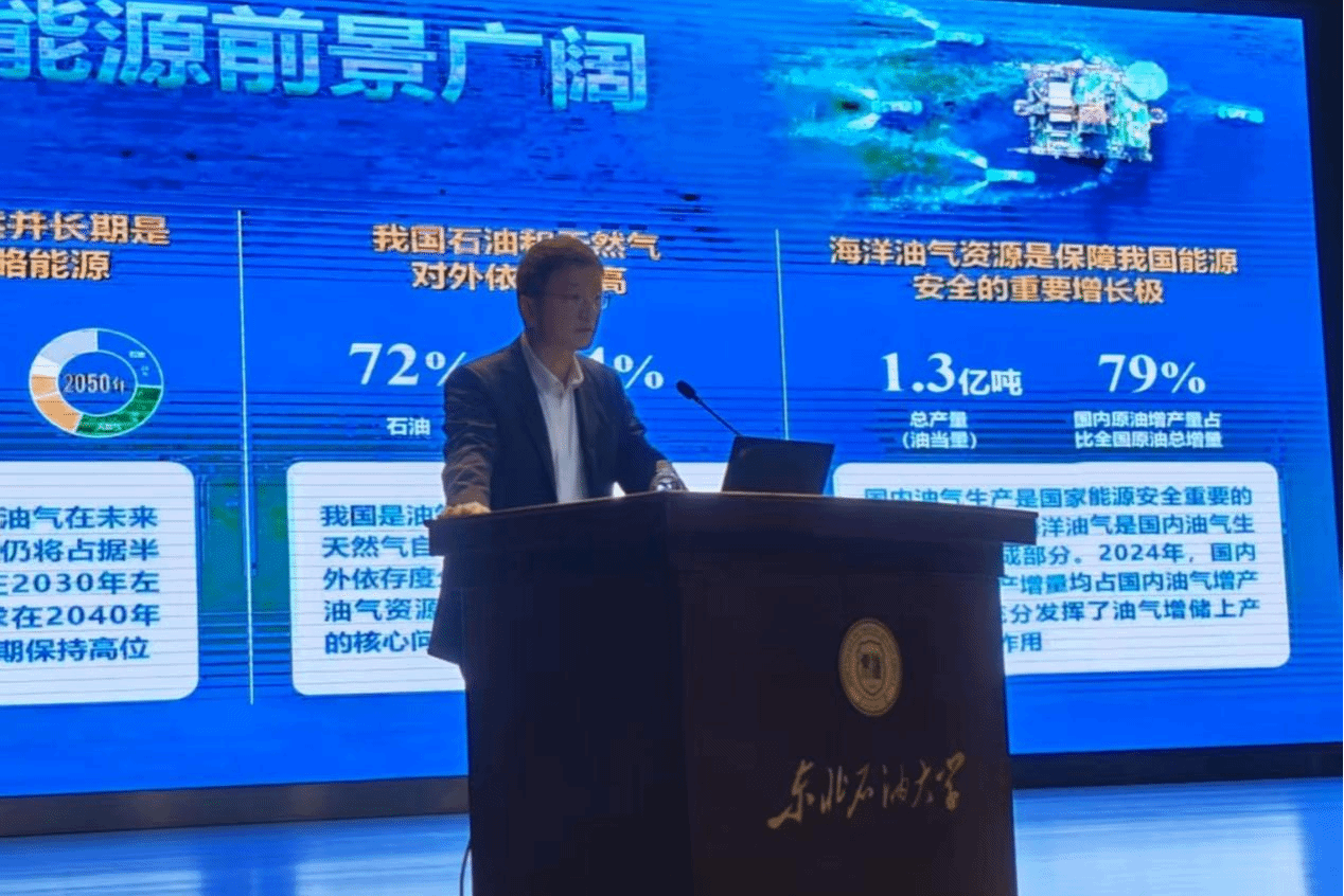 秦文刚从企业使命、业务布局及行业责任出发,介绍了中海油集团在海洋油气勘探开发、清洁能源发展、科技创新等领域的重要成果,强调集团始终将青年人才视为发展核心动力;并向我校学子发出诚挚邀请,期待更多优秀青年加入,共同为保障国家能源安全、推动能源行业高质量发展贡献力量。