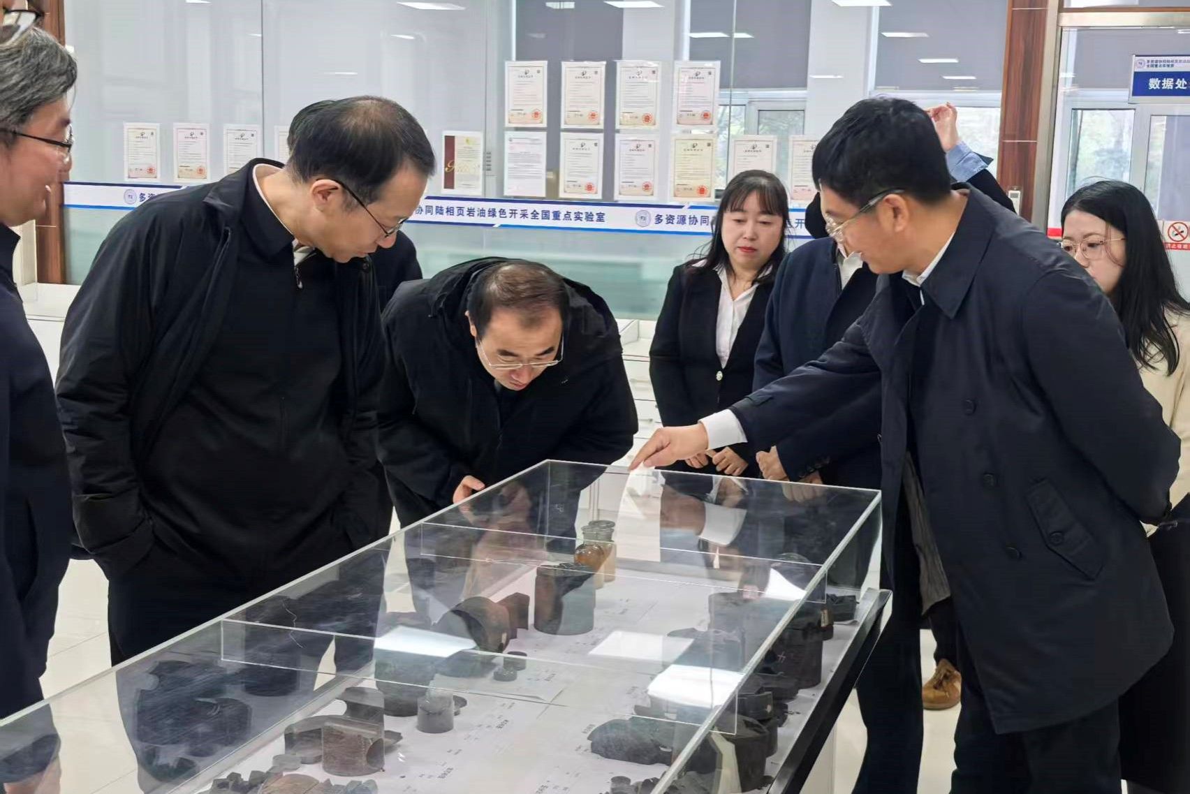 仪式后,李灿强、高炽扬、韩云在李伟的陪同下参观了我校全国重点实验室和页岩油检测中心实验室,并围绕东油科技创新工作开展调研。赵玲介绍了获奖项目的核心内容、关键创新技术及科研成果。