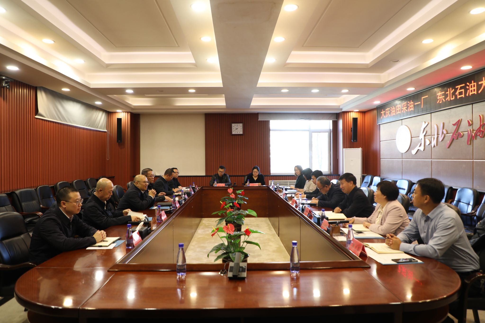 (记者/摄影 周宏)10月30日,我校与大庆油田采油一厂在机关四楼会议室召开座谈交流会。校党委书记付晓飞、校党委副书记高洪峰,大庆油田采油一厂党委书记黎鹤及双方相关部门负责人参加。