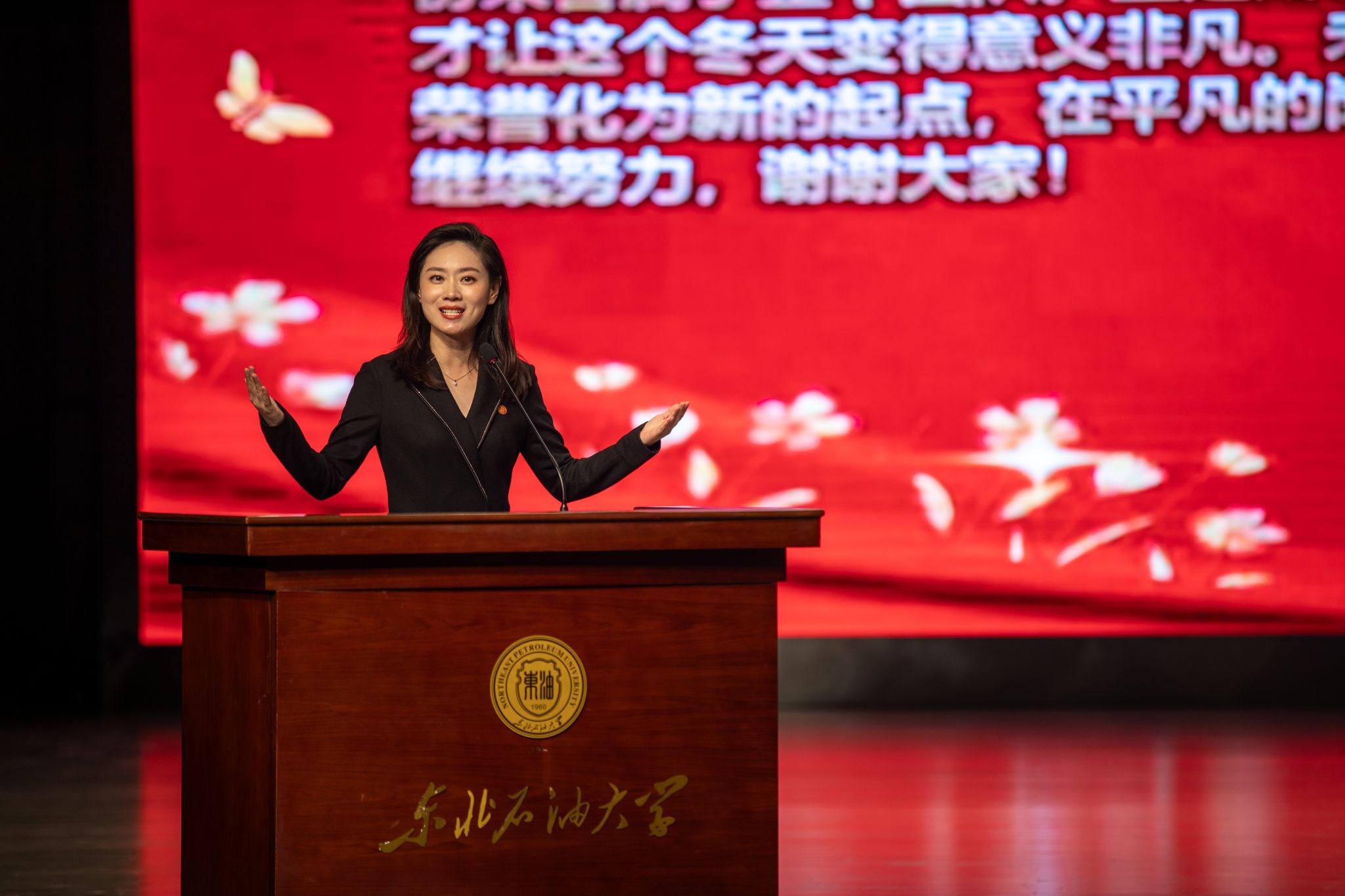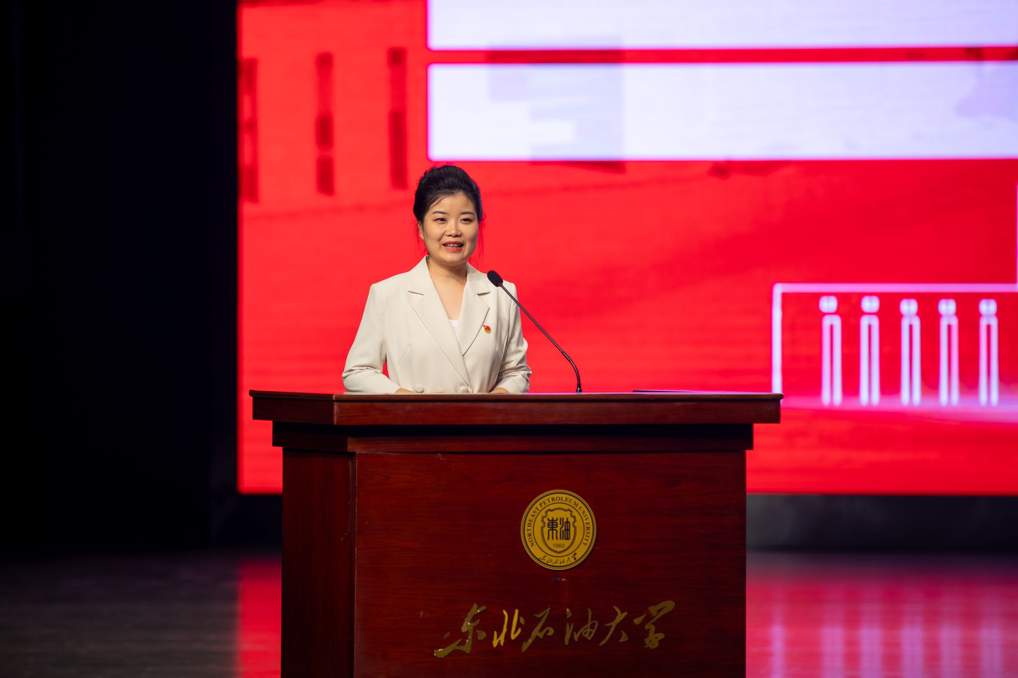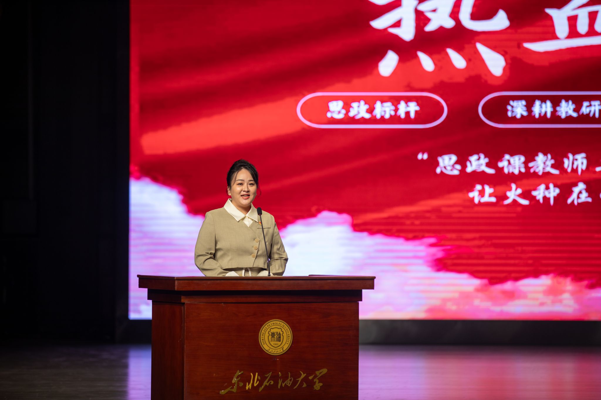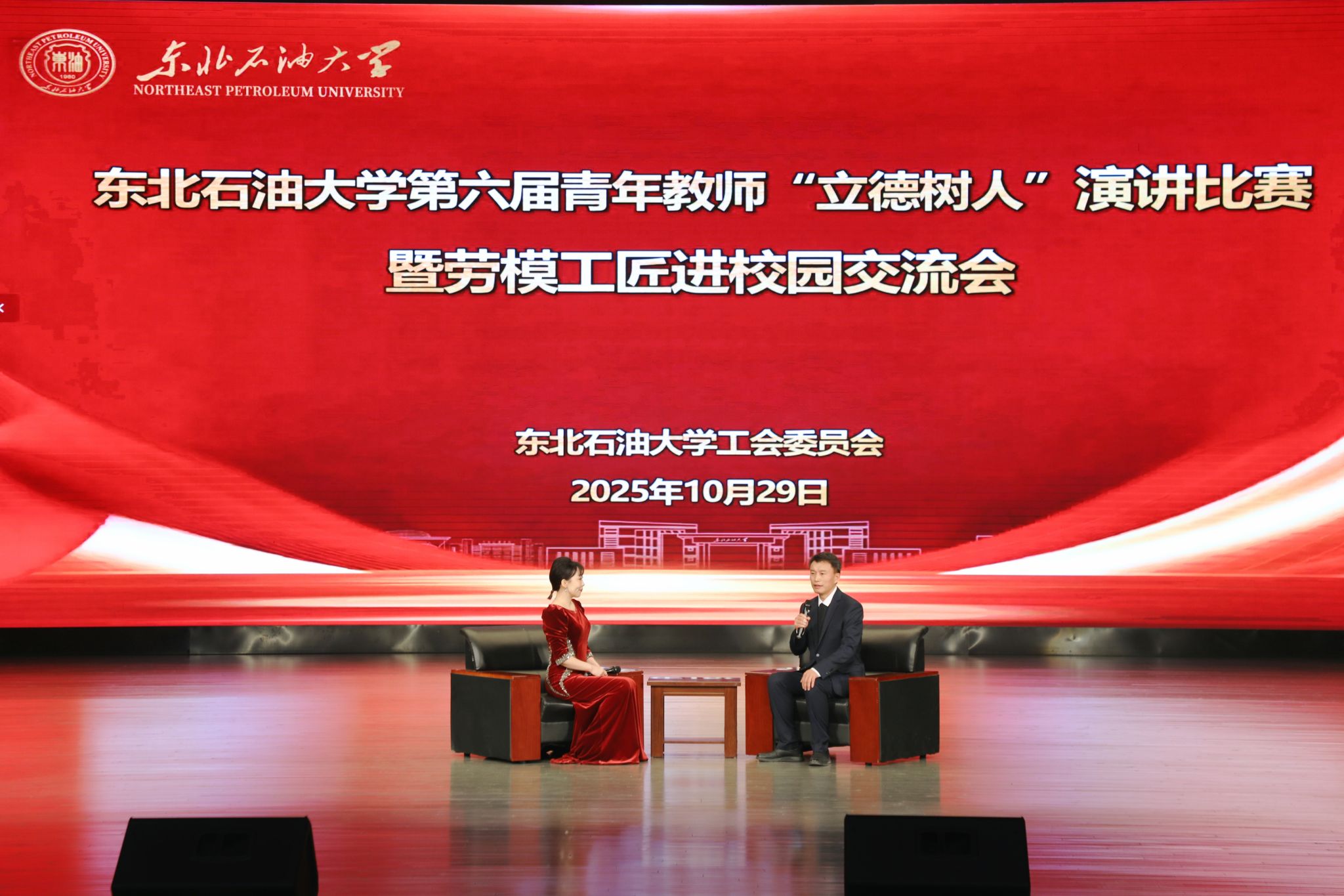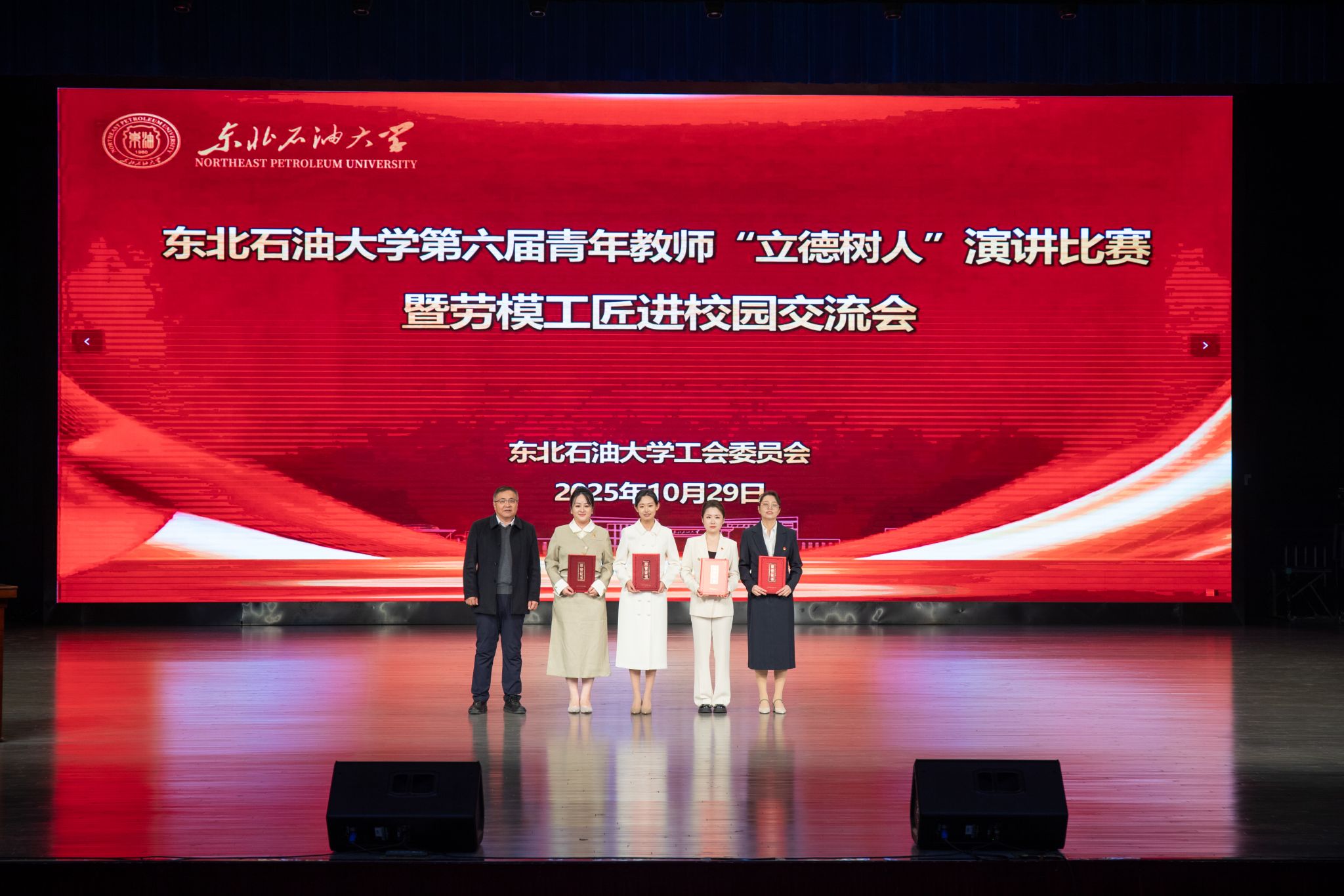 (通讯员 张昊 记者/摄影 辛纪元 杨雨剑)10月29日下午,第六届青年教师“立德树人”演讲比赛决赛暨劳模工匠进校园交流会在音乐厅举行。校党委班子成员付晓飞、于长青、李伟、杨二龙、李海成、王志磊、徐清亮出席。校工会副主席姜海燕,大庆精神教育研究中心主任李万鹰,校团委书记施洋,人事处副处长、党委教师工作部副部长马洪杰,人文科学学院副院长陈竞飞担任比赛评委。各二级单位相关负责人及师生代表参加。