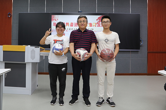 活动最后举行了赠予仪式,蒋明虎自费为同学们购买了书籍,勉励同学们要爱读书、勤读书、善读书、读好书,努力提升思想道德水平和科学文化修养。学生工作部赠送给同学们体育用品,希望同学们锻炼强健体魄,砥砺拼搏精神,锤炼坚定意志。