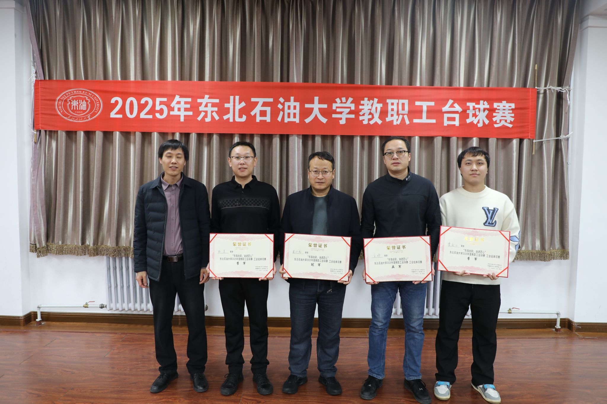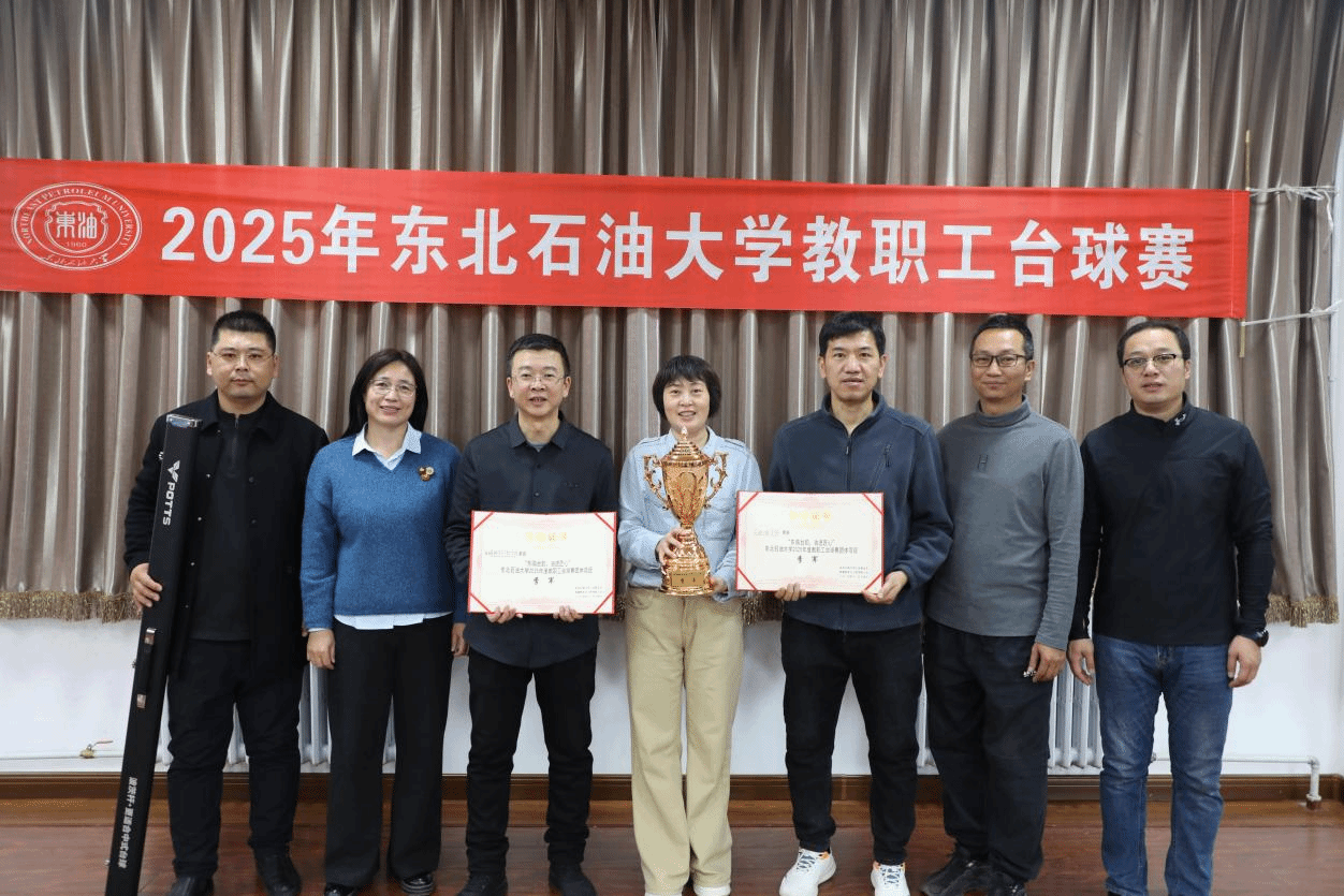 经过5天赛程,11月14日晚,比赛圆满落幕。历经小组赛、交叉淘汰赛与决赛的激烈角逐,决出团体项目和工会组个人项目奖项:校机关代表队摘得团体组冠军,现代教育技术中心、体育部联队获得亚军,机械科学与工程学院代表队、石油工程学院代表队并列团体组第三名;工会组个人项目蒋衍彪荣获冠军,王琦荣获亚军,张昊与霍新江并列第三名,闫超、王超、韩玉祥、滕野并列第五名。闭幕式上,校工会、机械科学与工程学院、校台球协会相关负责人分别为获奖者颁奖。