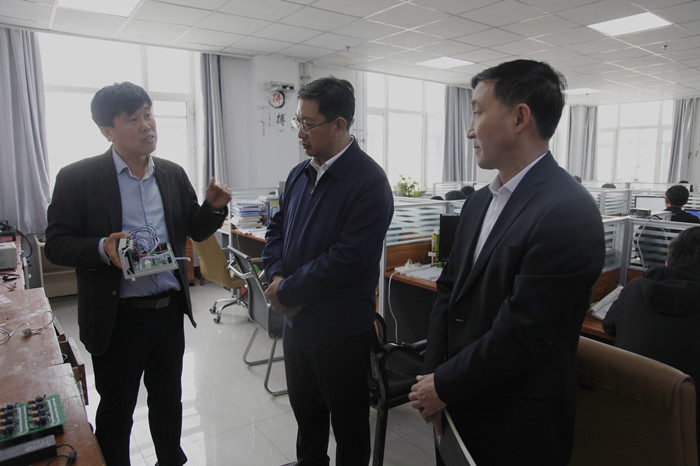 随后,韩辉一行乘车专程来到我校国家大学科技园看望慰问市领导联系服务专家、我校复杂系统与先进控制研究院院长董宏丽教授。在董宏丽教授实验室,韩辉等领导与董宏丽教授亲切交流,认真听取了董宏丽教授的工作汇报,详细了解了实验室的建设情况、科研方向以及目前存在的困难和问题,并就相关问题现场要求政府相关部门负责人协调解决。在东北石油大学智能仪器研发中心,听取了中心负责人刘庆强副教授关于视频监控系统智能运维解决方案的汇报,并针对研究过程中存在的困难责成有关部门协调解决。参观考察中,他还详细了解了我校大学生创新创业情况。
