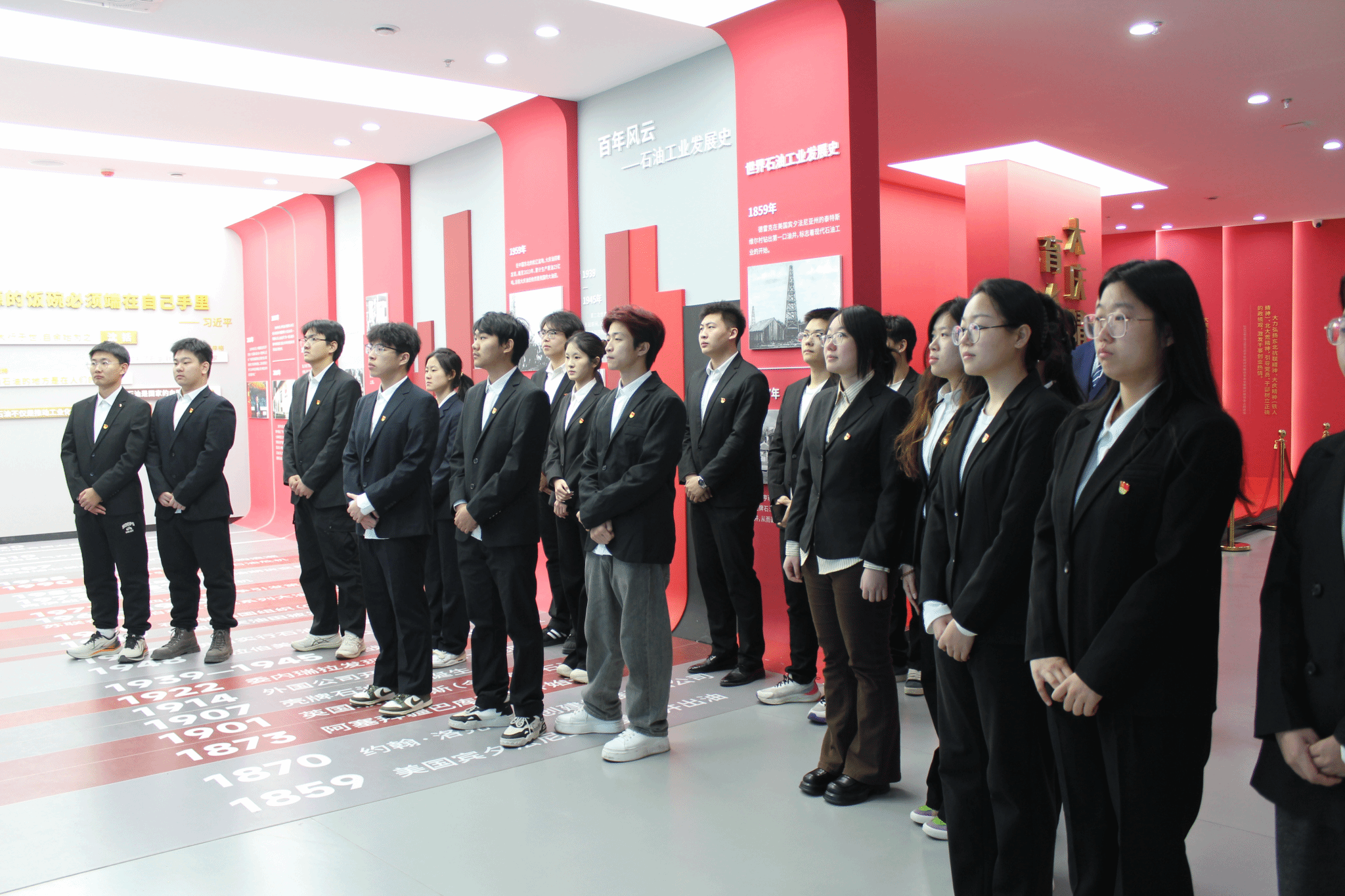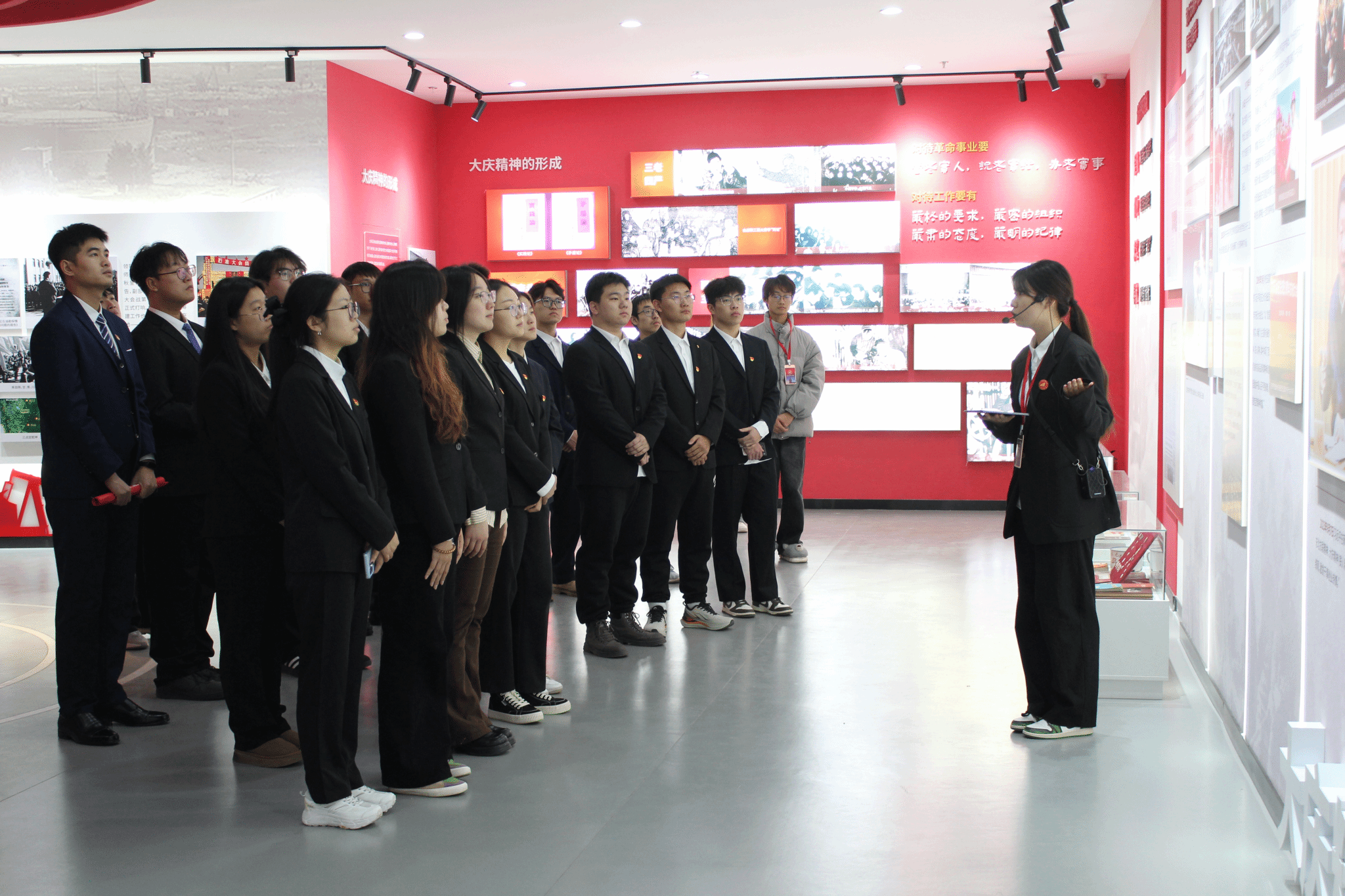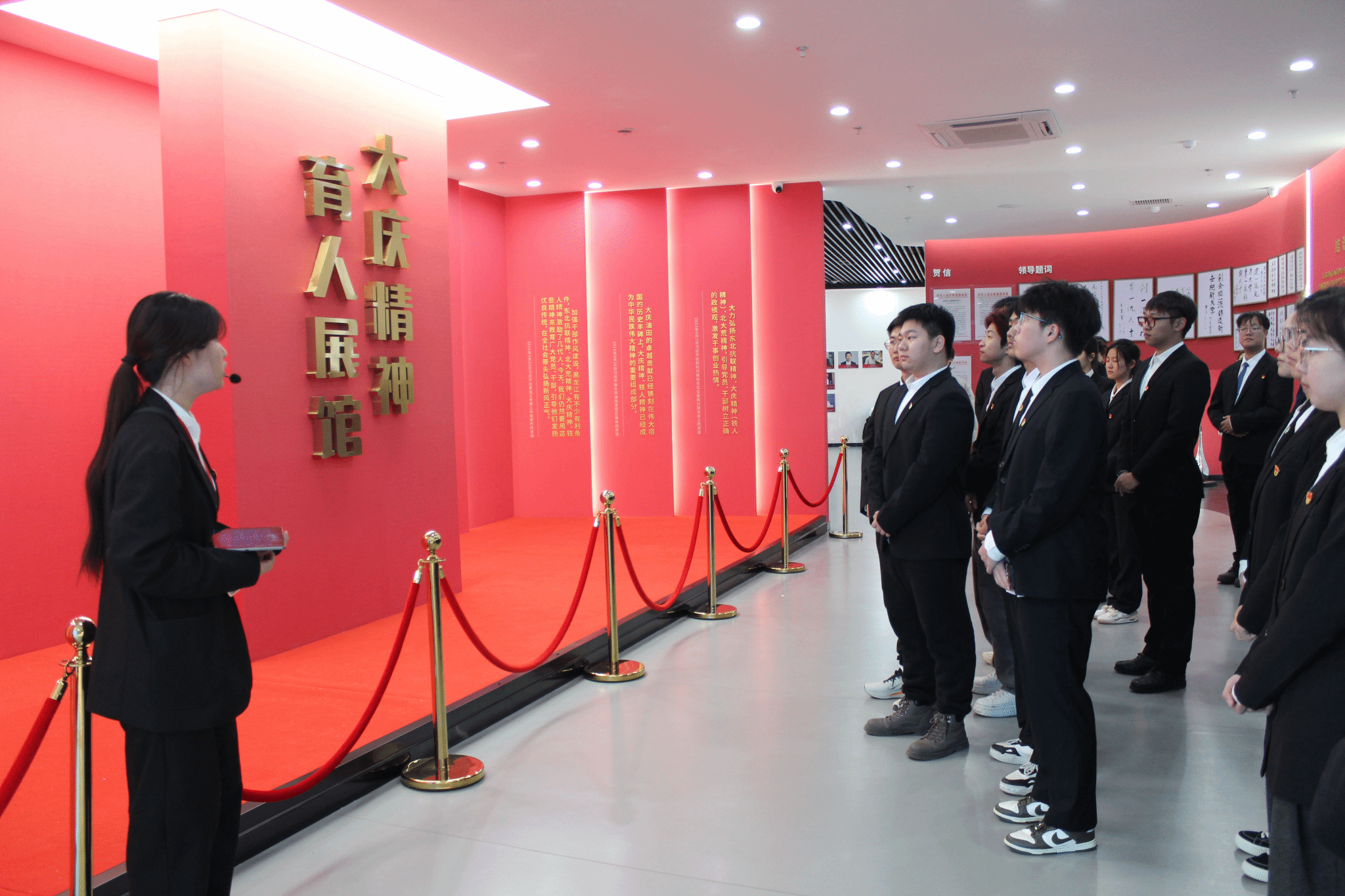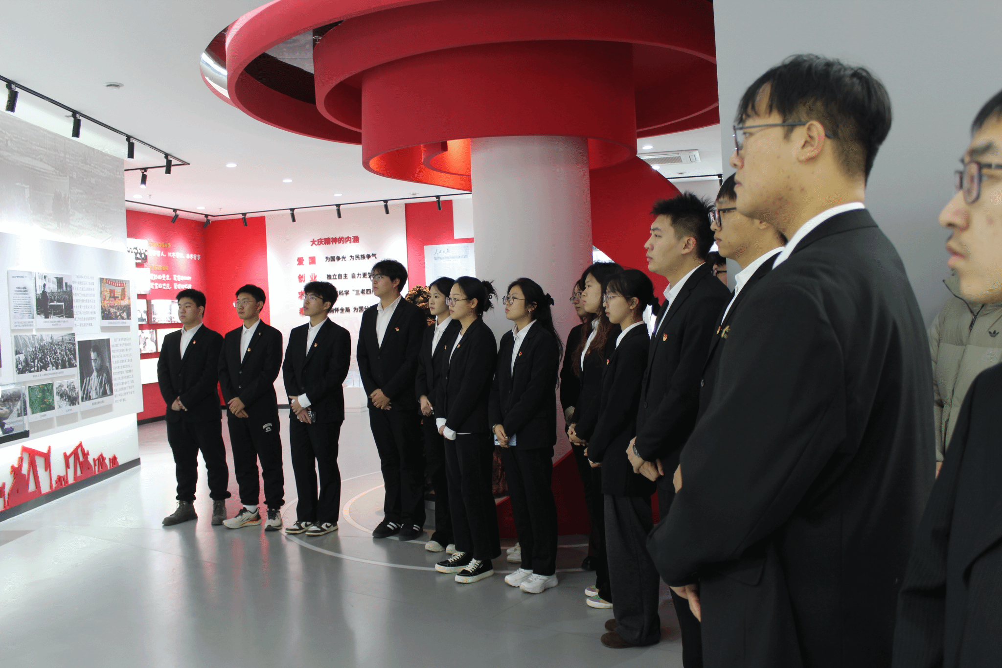 在大庆精神育人展馆内,宣讲员全方位讲解了铁人王进喜同志的奋斗历程,深入解读铁人精神的形成背景、丰富内涵与时代价值。党员们在研学中深悟铁人精神的磅礴力量,深化了对红色精神的认知与理解。