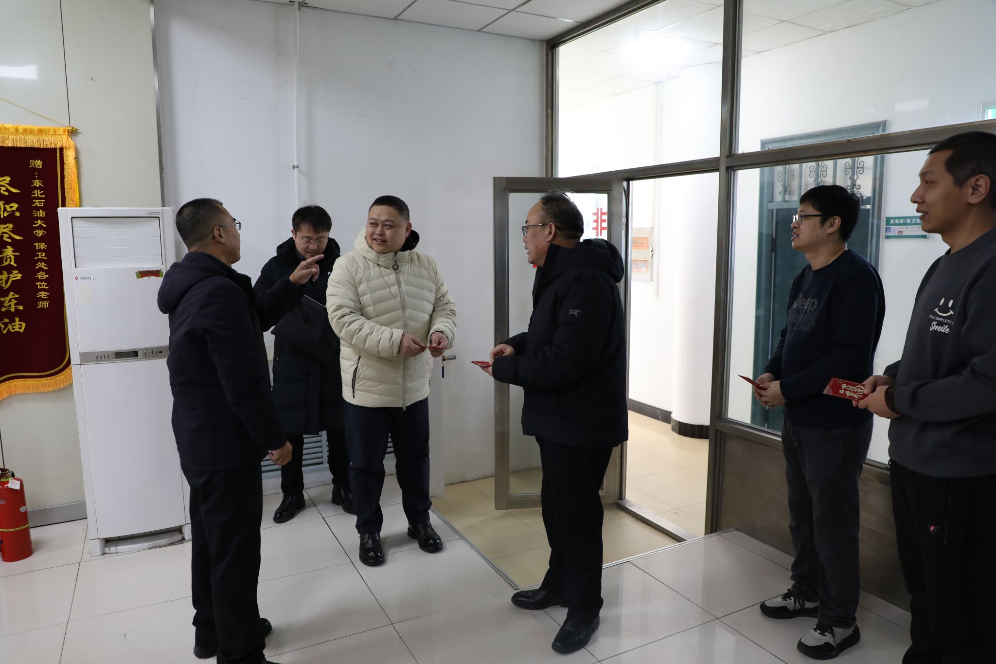 (记者/摄影 杨雨剑)2月16日,正值农历丙午马年除夕,校党委书记付晓飞带队走访学校总值班室、后勤管理处、保卫处总监控室等地,慰问春节期间坚守岗位的教职工,并送上暖心红包、热气腾腾的饺子和新春的美好祝福。