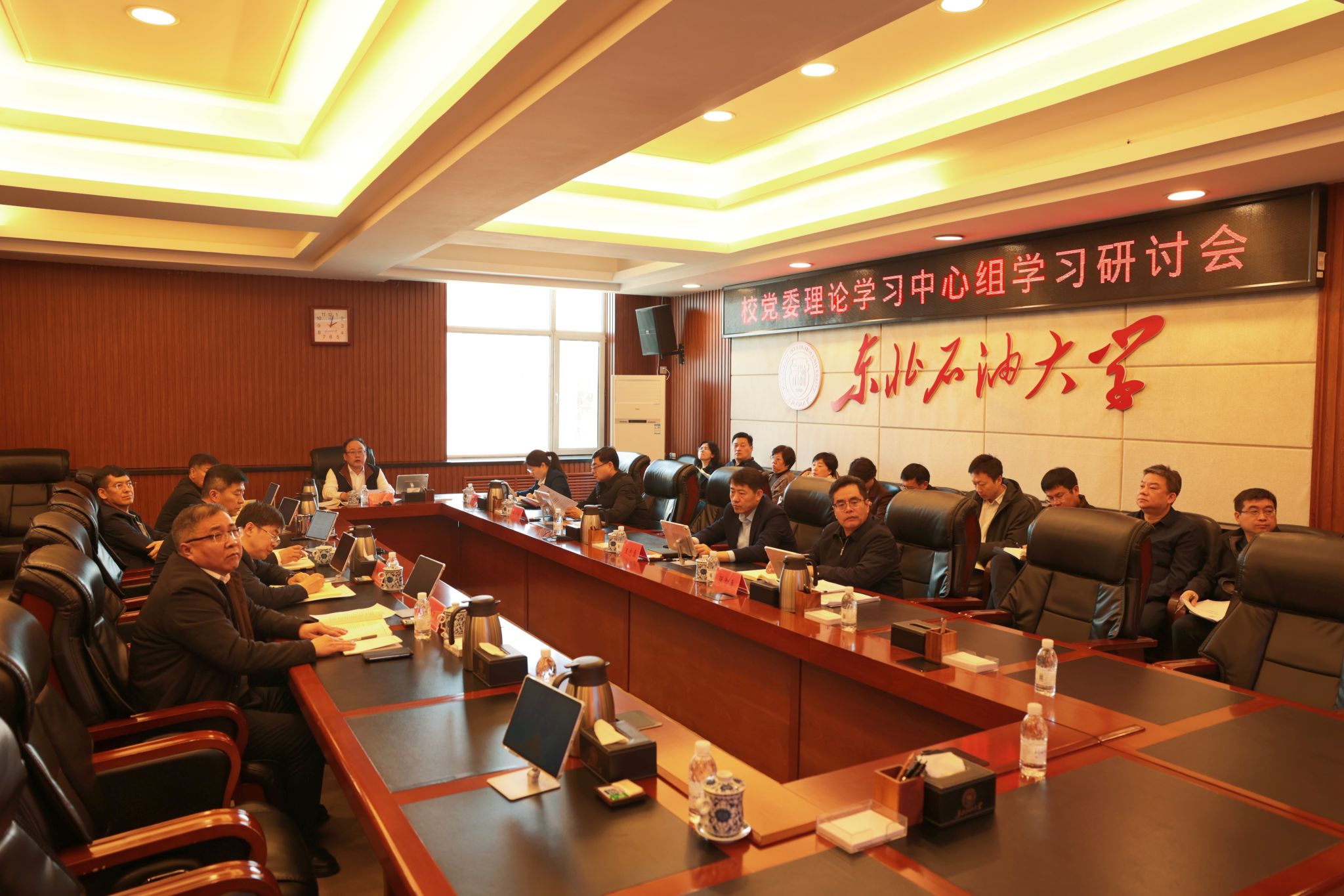 (记者/摄影 辛纪元)3月12日下午,我校在机关五楼会议室举行校党委理论学习中心组学习研讨会,校党委书记付晓飞主持会议。