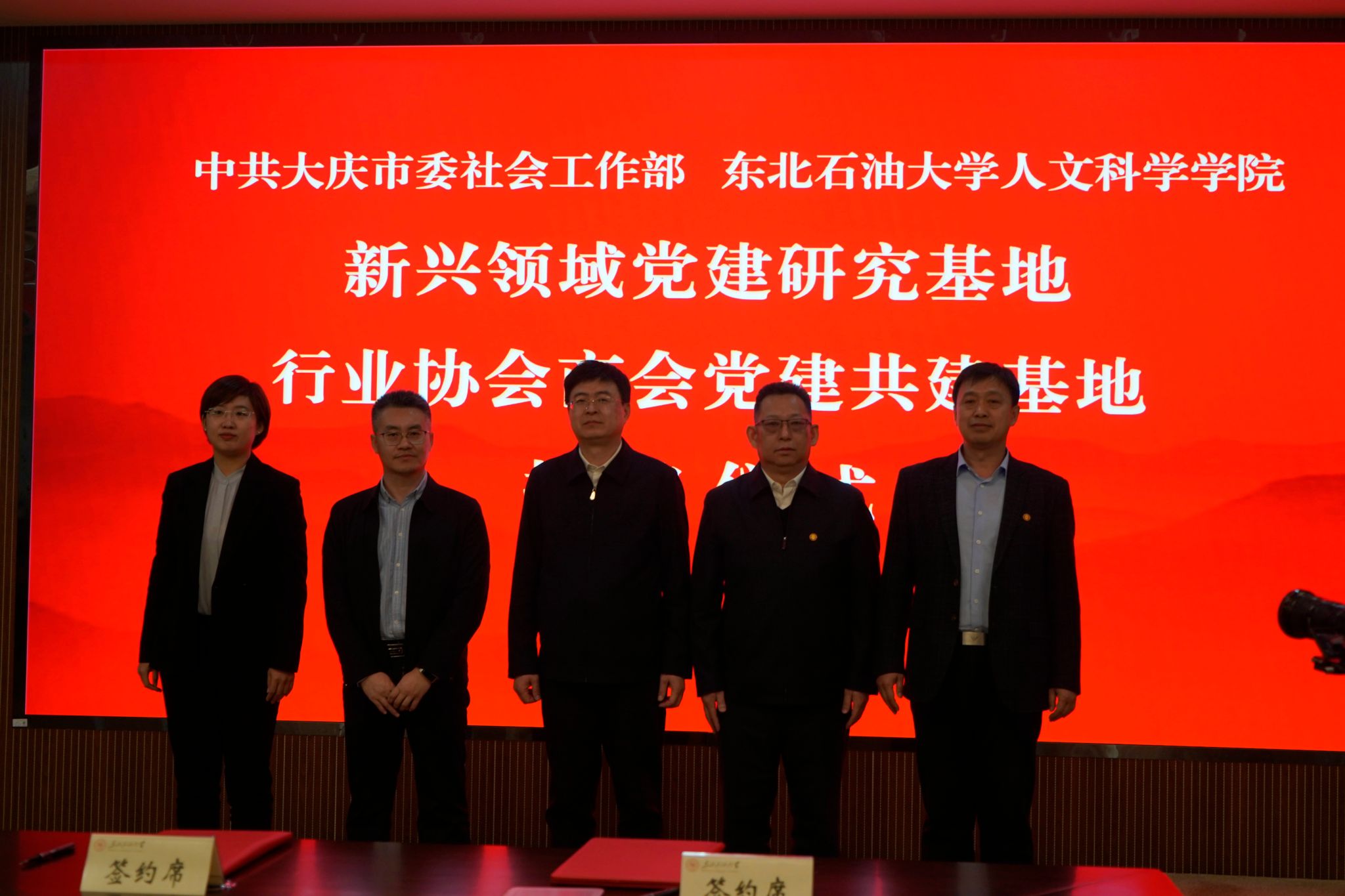 仪式上,市委副秘书长、社会工作部部长、“两新”工委书记刘波,人文科学学院党委书记孙鸿分别致辞。部院双方签订合作协议,并为大庆市新兴领域党建研究基地、大庆市行业协会商会党建共建基地揭牌。