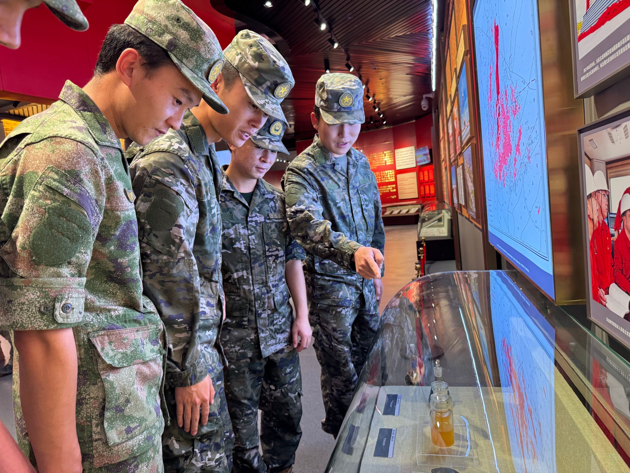 在大庆油田创业史展区,大家驻足于记录油田发展规划的展墙前交流讨论,感受石油开发的艰辛历程;在一幅幅反映创业初期的黑白照片前肃立凝望,仿佛重回奋斗岁月,感悟石油前辈“为国找油、无私奉献”的崇高境界,也在回望自身军旅初心中筑牢信仰根基。