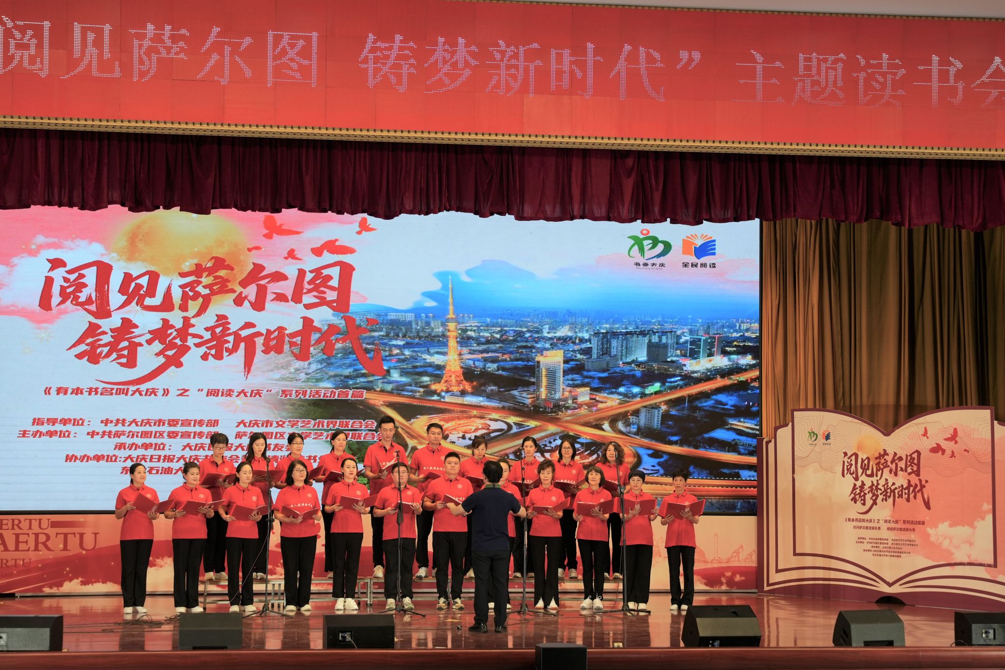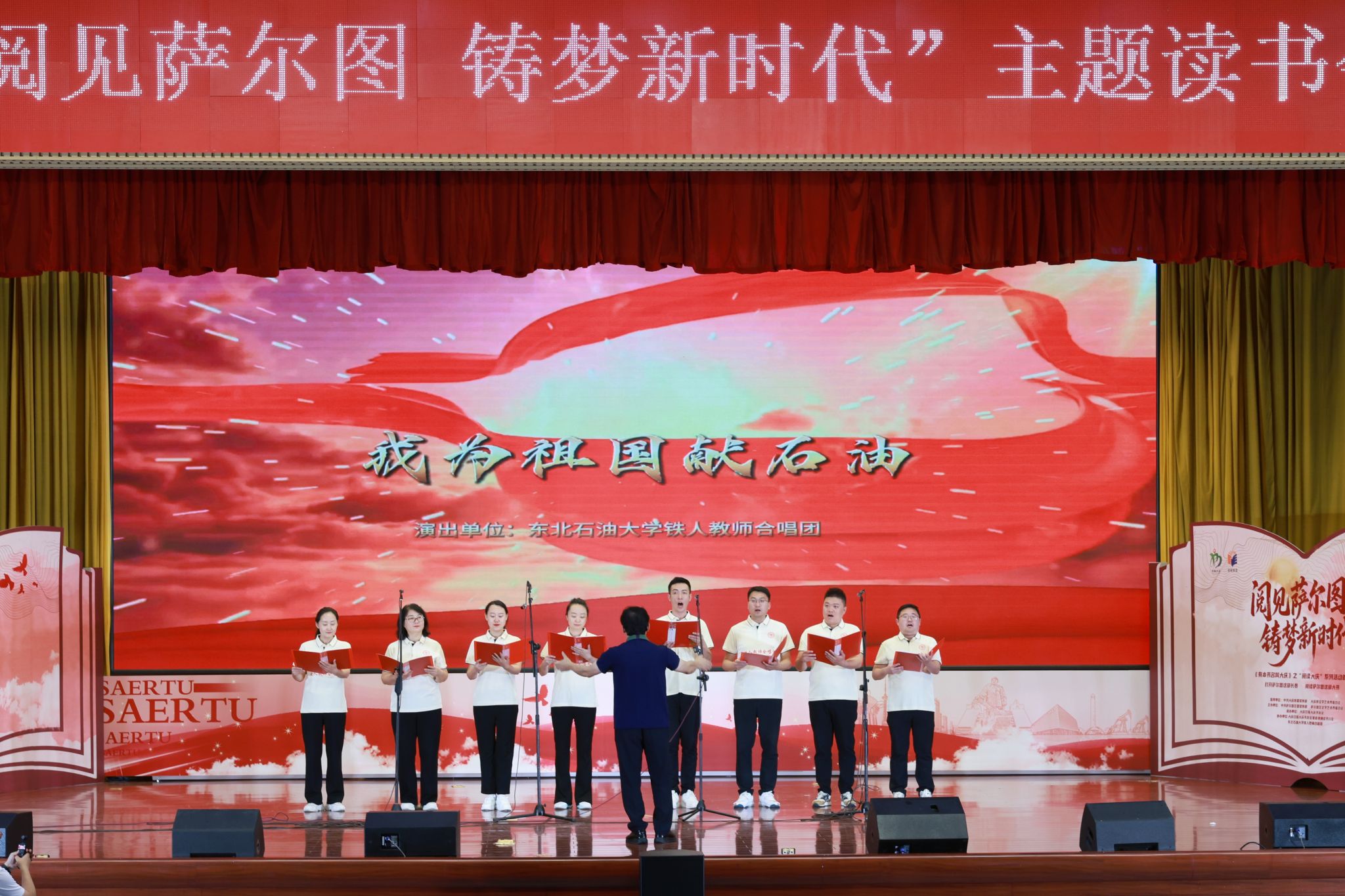 (通讯员 杜琳琳 记者 胡玉喆)9月25日下午,我校铁人教师合唱团协办的《有本书名叫大庆》之“阅读大庆”系列活动首篇——“阅见萨尔图 铸梦新时代”主题读书会在萨尔图区人民政府三楼报告厅举办。合唱团应邀演出了《我为祖国献石油》《踏着铁人脚步走》《歌唱祖国》三首合唱歌曲,扩大了合唱团的知名度和影响力,擦亮了东油对外交流的文化名片。