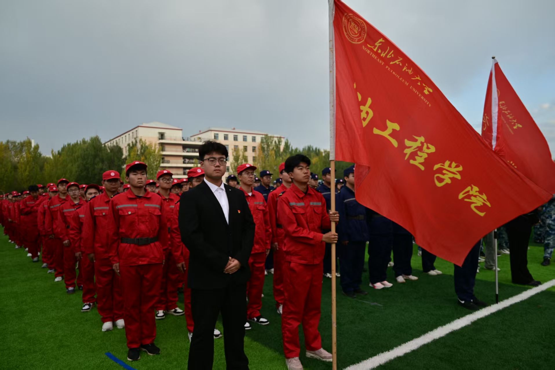 校学生干部代表杨宾作国旗下演讲,回顾革命先烈的不朽功勋,号召全体师生将个人理想融入祖国发展大局,在学习科研、社会实践等各领域践行“强国有我”誓言。她带领全体同学庄严宣誓“请党放心,强国有我”,彰显东油学子的青春使命与担当。