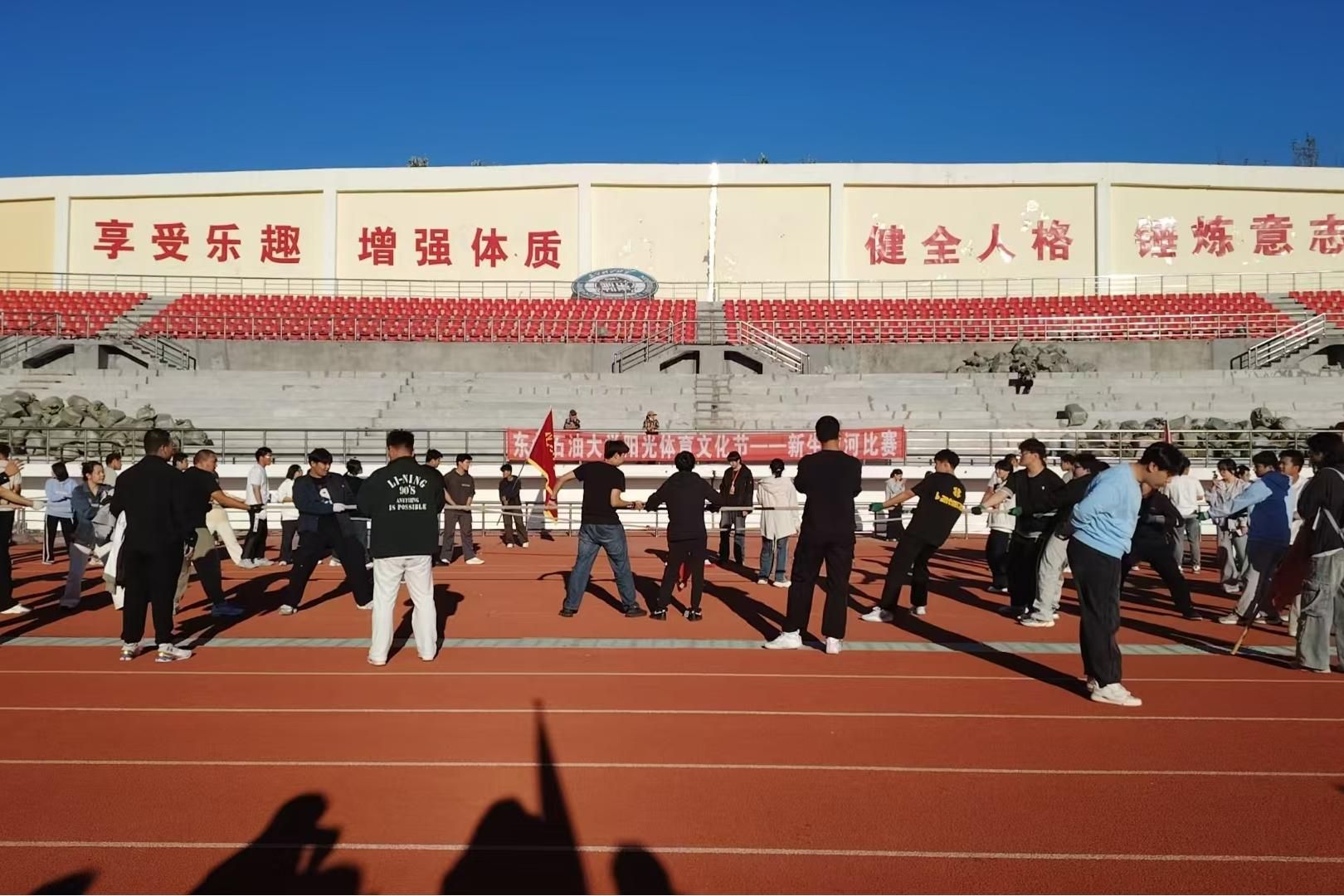 (通讯员 刘立业 记者 胡玉喆)为丰富校园文化生活,培养拼搏进取的团队精神,增强学生体育素质与团队凝聚力,近日,体育部联合校团委在田径场举办2025年东北石油大学阳光体育文化节新生拔河比赛。全校14支队伍共300多名新参赛。