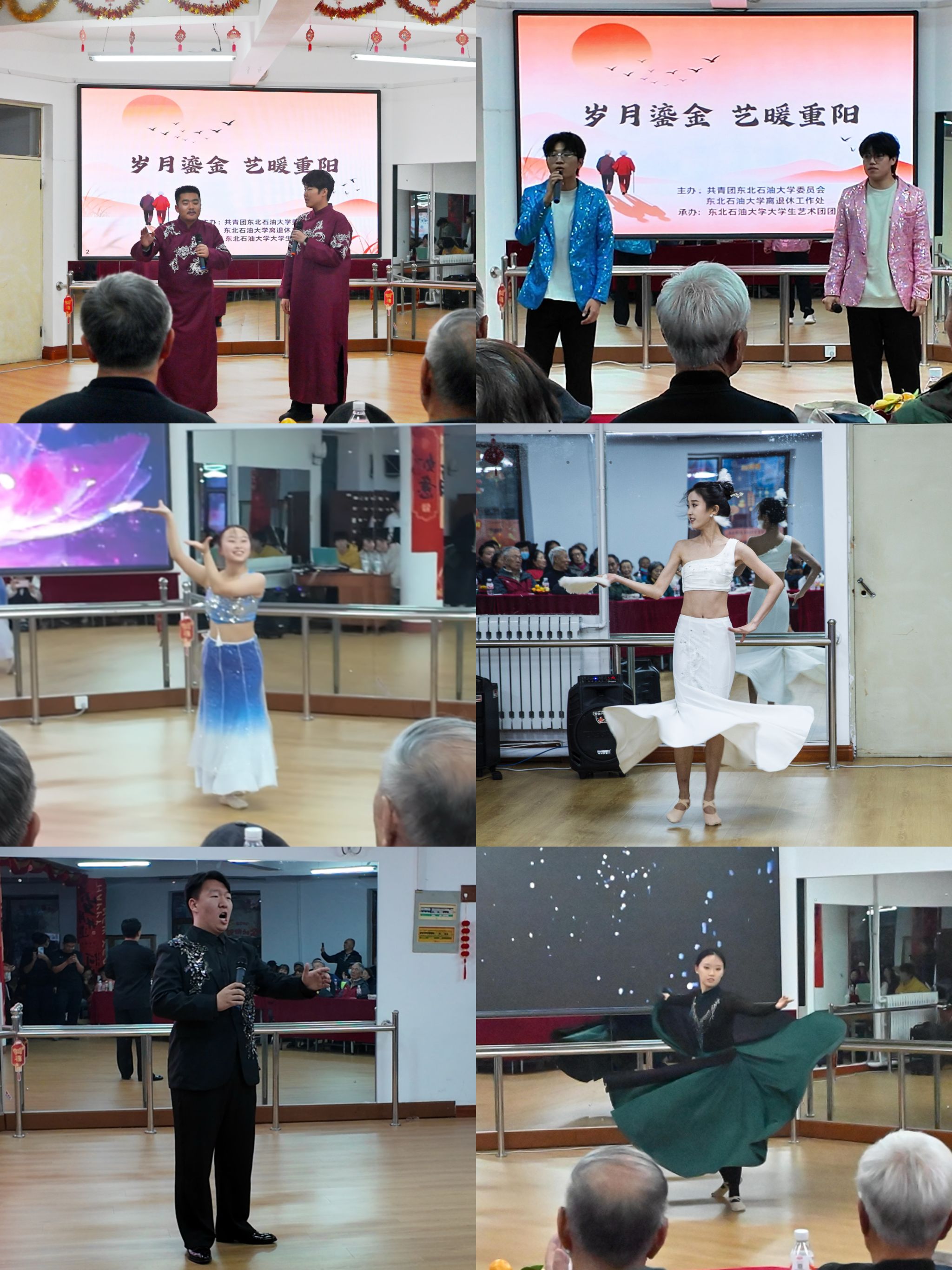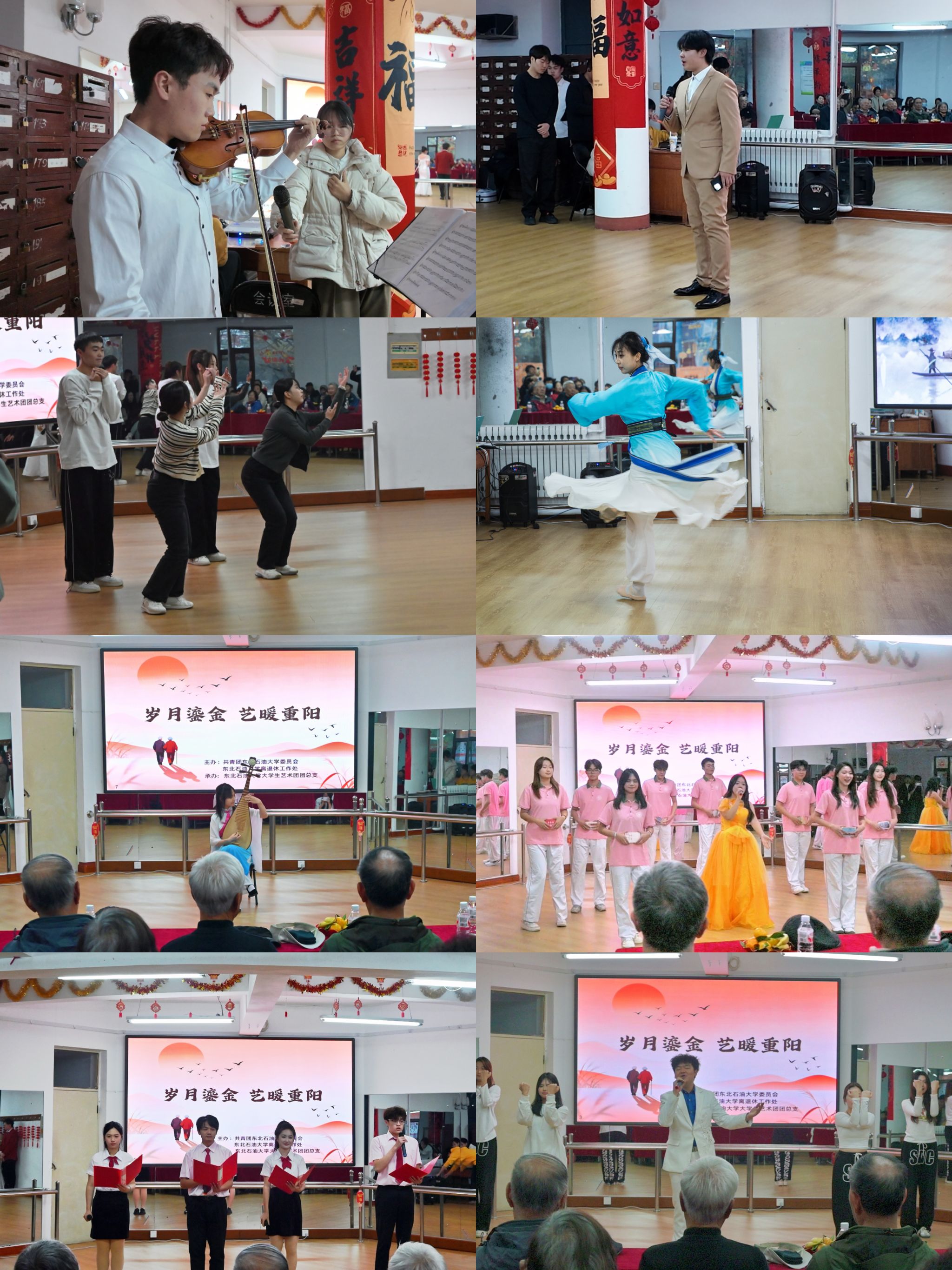 (通讯员 任香竹 记者 胡玉喆)金秋送爽,又逢重阳。为大力弘扬中华民族尊老、敬老、爱老的传统美德,10月29日,由校团委与离退休工作处联合主办、大学生艺术团团总支承办的“岁月鎏金 艺暖重阳”重阳节送温暖演出在离退休活动室举办。校团委、离退休工作处相关负责人,大学生艺术团创始人、团长及120余位离退休教师参加。