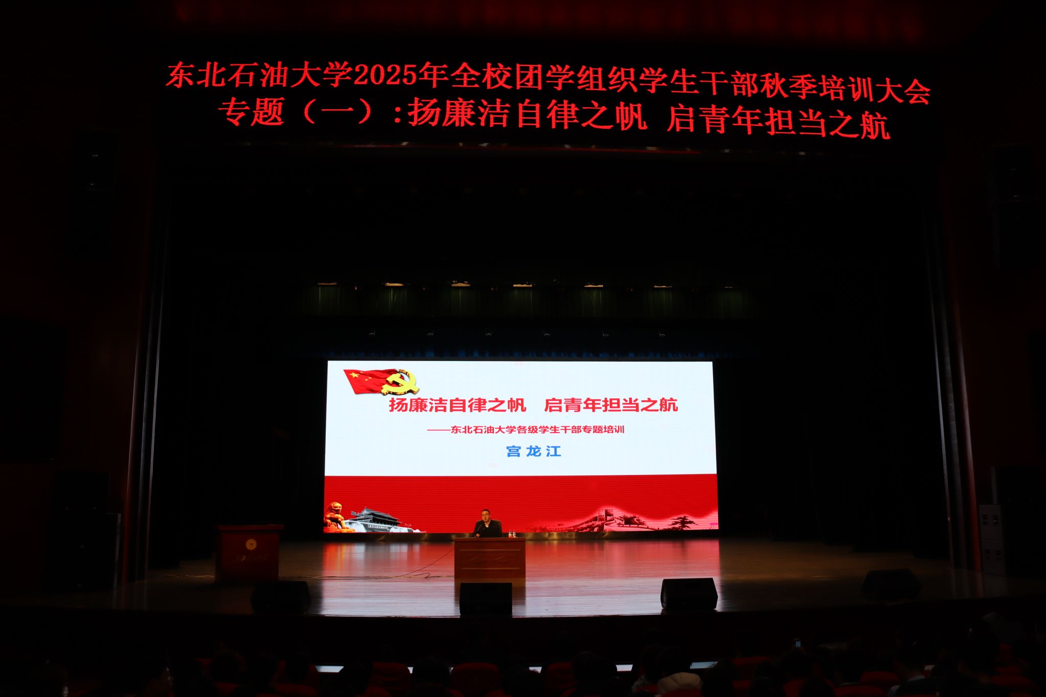 (通讯员 江子涵 张哲菲 记者 胡玉喆)为深入学习贯彻党的二十大和二十届二中、三中、四中全会精神,全面落实习近平总书记关于青年工作的重要论述,提升全校团学骨干的思想政治素养、责任担当与履职能力,近日,我校在音乐厅举行2025年全校团学组织学生干部秋季培训大会。校纪委副书记兼纪委办公室主任宫龙江,校团委书记施洋、副书记金海燕,相关职能部门负责人,各二级学院团委书记及学生干部共1000余人参加。金海燕主持。
