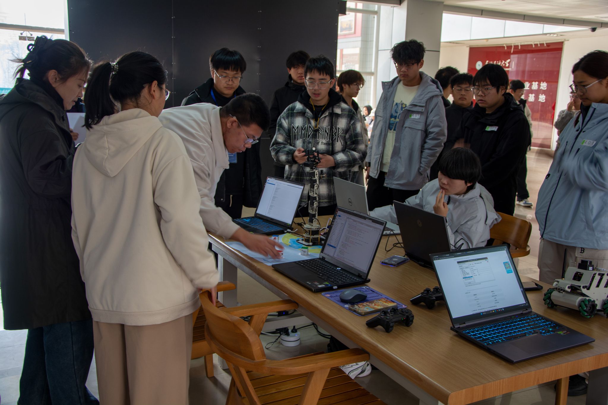 (通讯员 张天衣 记者 周宏)为搭建科技交流平台、激发学生科创热情,推动跨学科协同创新,11月23日,秦皇岛校区“一院一品”暨首届机器人AI技能大赛在图书馆二楼大厅举办。本届赛事由电气信息工程系承办,来自各系部的十五支参赛队伍、四十余名同学同台竞技,尽显科技创意与实践风采。秦皇岛校区副校长荆国林,电信系书记刘彦昌、主任陈雷现场观赛,电信系教师原大明、贾茉、张昕、孙振兴担任评委。