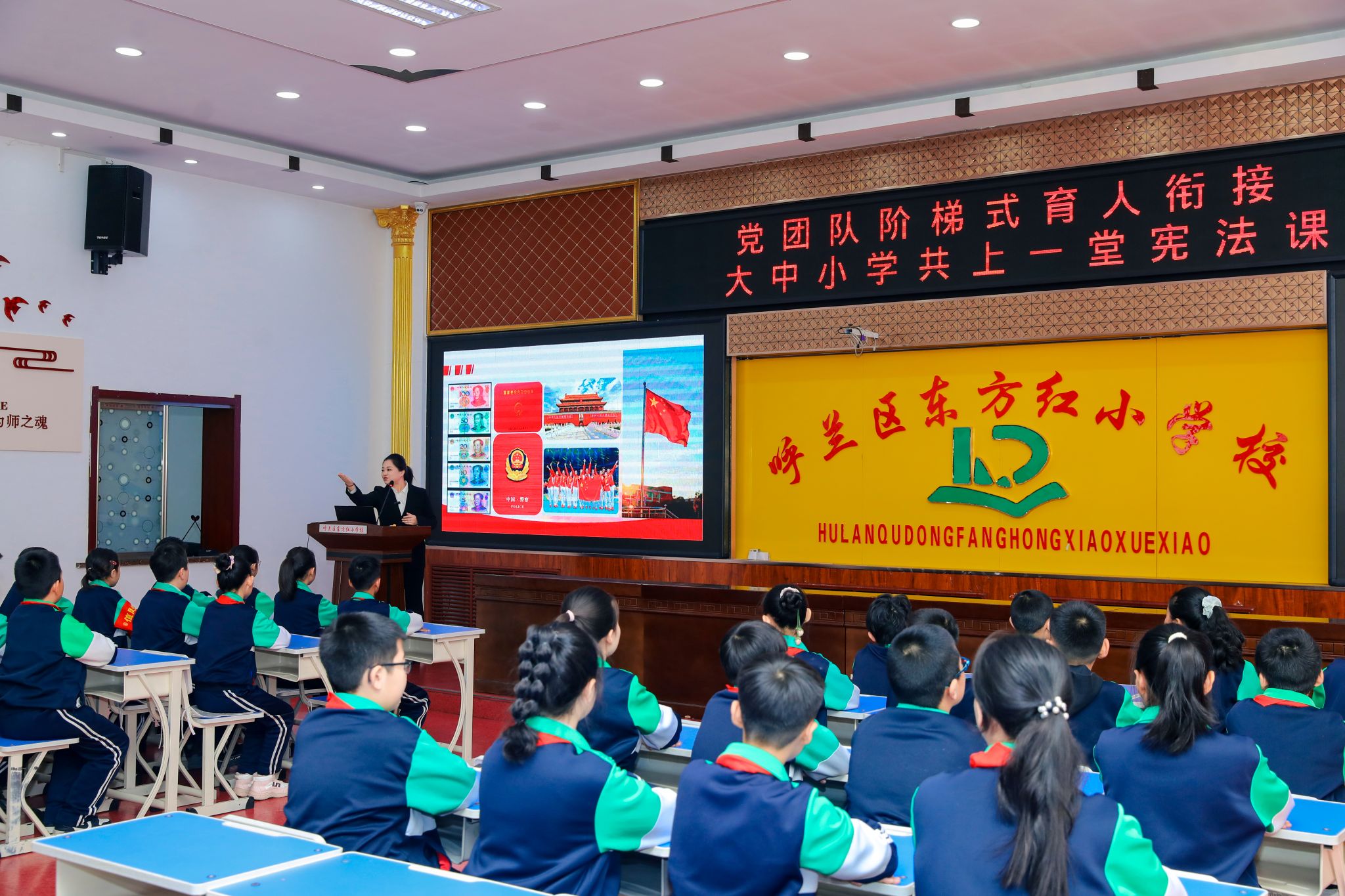 (记者 周宏)为迎接第十二个国家宪法日,12月1日,马克思主义学院、大庆精神教育研究中心与共青团哈尔滨市呼兰区委员会、少先队哈尔滨市呼兰区工作委员会联合主办“党团队阶梯式育人衔接 大中小学共上一堂宪法课”主题活动。活动由我校教育部人文社科项目高校思想政治理论课教师研究专项“网络微课共享推进大中小学法治教育一体化建设研究”课题组、东方红小学、向未来少先队名师工作室共同承办。