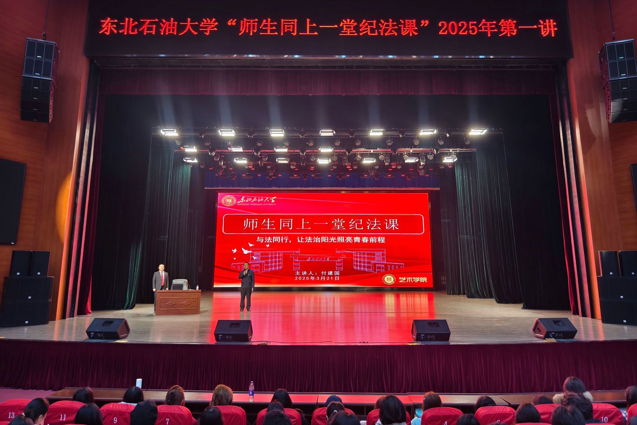 为让廉洁文化真正入脑入心、落地生根,切实发挥其固本培元的重要作用,学校纪委紧扣师生群体的认知特点和实际需求,构建“分层分类 精准靶向”的宣讲体系。邀请校纪委书记、宣传部部长、计划财务处处长、科研处处长聚焦全面从严治党、财经纪律、科研项目经费管理等内容面向全校处科级干部及机关处室、二级学院的关键岗位、关键人员开展“讲制度、讲纪律、讲案例”专题宣讲会,进一步强化各单位各部门全面从严治党主体责任意识和教职员工的纪律规矩意识。2025年,由学校纪委主办、各二级学院承办的“师生同上一堂纪法课”活动已面向全校开展6场,活动邀请大庆公安局交警支队、大庆市强制隔离戒毒所、大庆市高新区法院等多名一线专家授课,通过“面对面”宣讲、“零距离”交流方式,让党纪学习教育融入师生日常工作生活,教育引导全体师生明底线、知敬畏、存戒惧、守规矩。