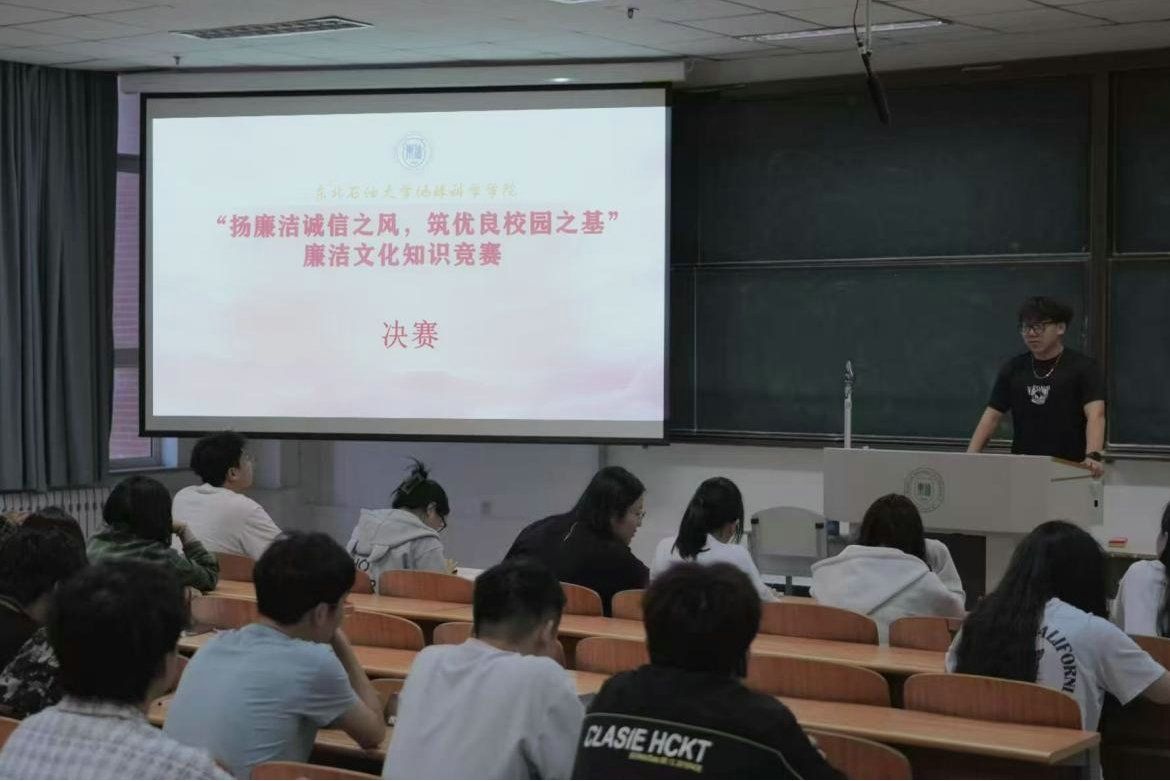 将“廉洁文化”纳入人才培养体系,创新廉洁教育主课堂,是落实“三全育人”战略的关键举措,更是塑造青年价值观、培育廉洁意识的主渠道。学校纪委联合马克思主义学院、外国语学院等多名优秀教师共同打造《廉洁文化》选修课,该课程以习近平总书记关于加强新时代廉洁文化建设的重要论述为遵循,涵盖全面从严治党、廉洁家风建设、理想信念教育、大庆精神育人等多个模块,通过“理论讲授+课内研讨+实践延伸”的系统教学,层层递进传递“以廉为荣、以贪为耻”的核心价值,教育引导学生在思想层面建立起抵御诱惑的“防火墙”,让廉洁理念真正内化于心、外化于行,截止目前已面向全校本科生开设四轮选修课程。