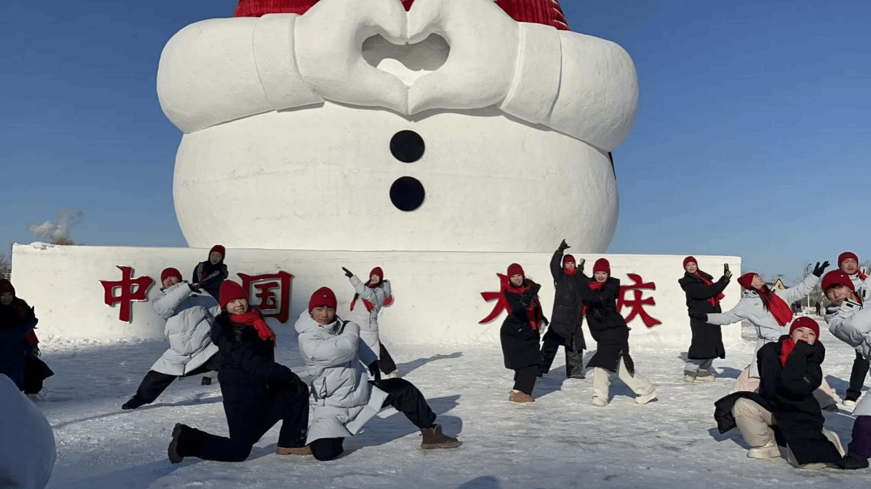 冰面如镜,映照出舞者们灵动的身姿。本次活动的表演者均为东北石油大学艺术学院舞蹈系学生,他们将多民族舞蹈元素融合,带来了一场别开生面的视觉盛宴。伴随着悠扬的旋律,学子们依次登场:东北秧歌的欢快俏皮,让冰面跃动着浓郁的关东风情;蒙古族舞蹈的舒展豪迈,尽显草原儿女的飒爽英姿;花棍舞的灵动翻转,划出俏皮的弧线;藏族舞蹈的庄重典雅,将高原的神秘韵味娓娓道来。旋转、跳跃,每一个动作都精准流畅,每一次腾跃都充满力量。用肢体语言与这片冰湖、这座城市对话,尽显舞蹈专业学子跨界创作的独特魅力。