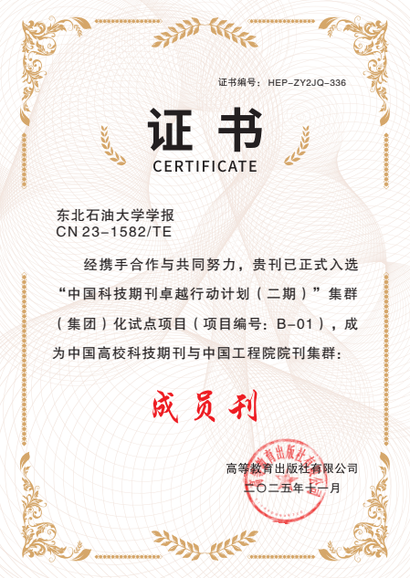 (通讯员 蔡田田 记者 周宏)近日,《东北石油大学学报》入选高等教育出版社有限公司“中国科技期刊卓越行动计划(二期)”集群(集团)化试点项目(项目编号:B-01),成为中国高校科技期刊与中国工程院院刊集群“成员刊”,并获颁证书。