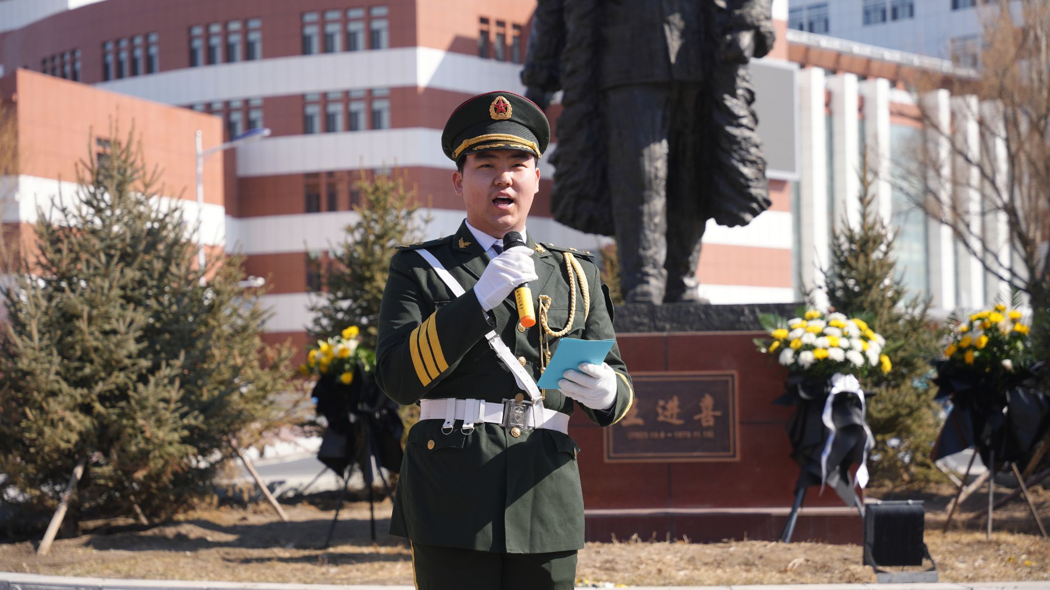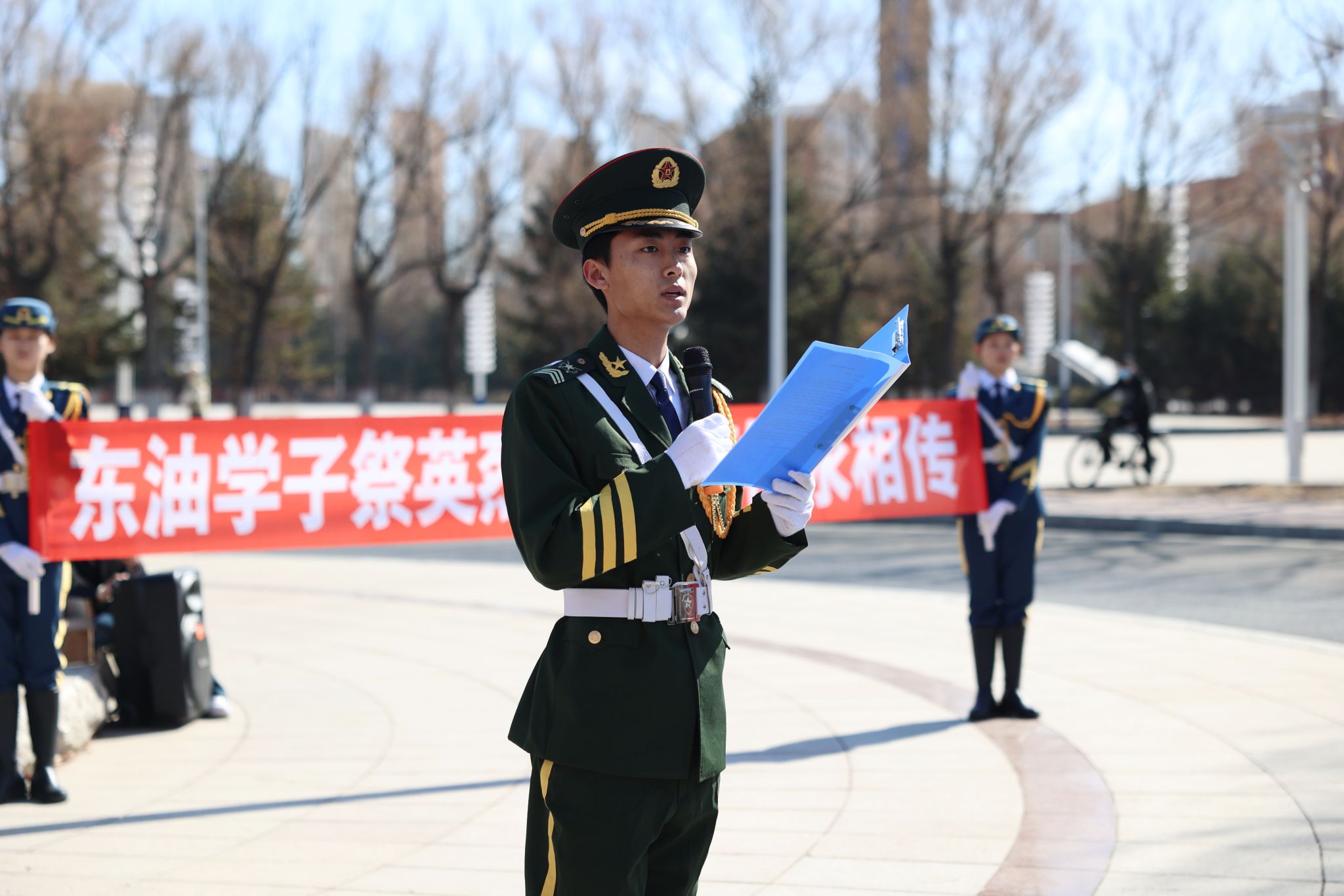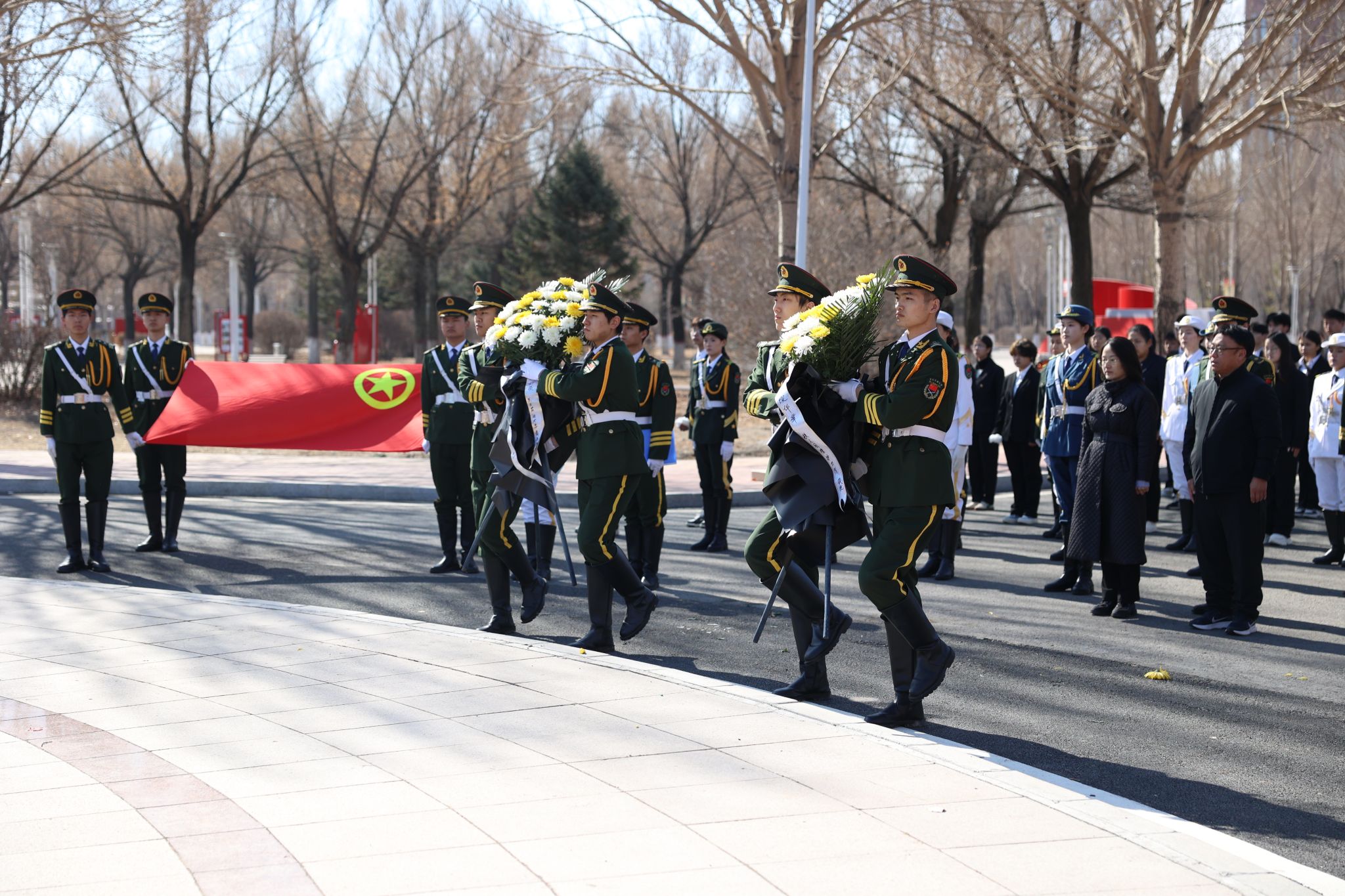 (记者 于晓雪 摄影 于晓雪 张楠)4月4日,由东北石油大学团委主办、铁人国旗护卫队团总支承办的“红旗承铁骨,清露寄英魂”清明祭奠活动在铁人王进喜雕像前开展。校团委书记施洋,校团委副书记金海燕,校友会秘书长、铁人国旗护卫队创始人、指导教师吴波,铁人国旗护卫队全体成员及青年学生代表共100余人参加。