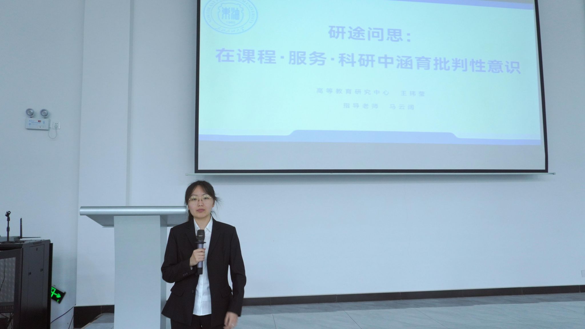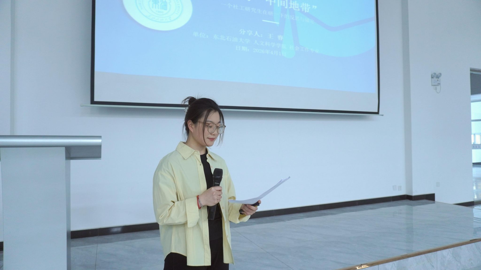 交流环节,各学院学生代表依次发言。艺术学院雷亮豪围绕“样式雷”建筑美学,解析其形制布局、工艺细节与文化内涵,展现传统建筑魅力;人文科学学院学院王睿以“研途的中间地带”为题,分享研一下阶段学术转型经验,介绍高效文献阅读方法,倡导稳步积累;马克思主义学院宫颖颖结合竞赛与实践经历,从文献研读、导师沟通、心态调整三方面分享经验,鼓励大家以行动破除迷茫;高教中心王玮莹围绕课程、服务与科研,分享如何涵养批判性思维,倡导在反思与质疑中提升综合素养。