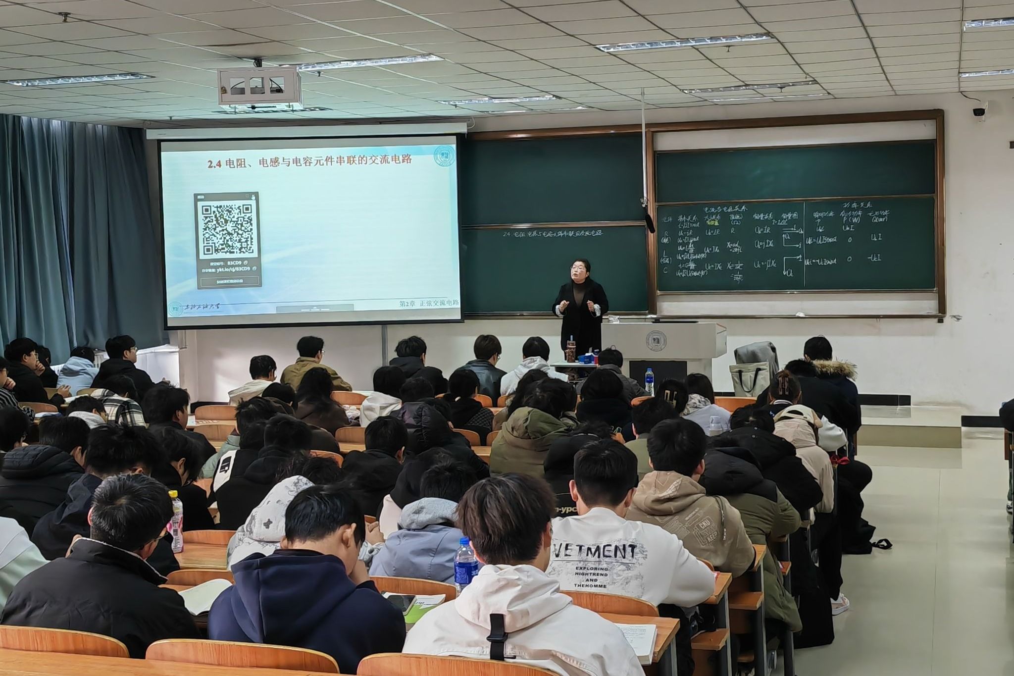 本次公开课由任爽老师主讲,讲授课程为《电工与电子技术基础》,授课内容为“电阻、电感与电容元件串联的交流电路”。教学质量监控与评估中心相关负责人、校本科教学督导组成员及部分青年教师到场观摩学习。课堂上,任爽精准把握课程核心知识点,灵活运用多元教学方法及现代化教学手段,打造了高效优质的示范课堂,为观摩教师树立了教学典范。
