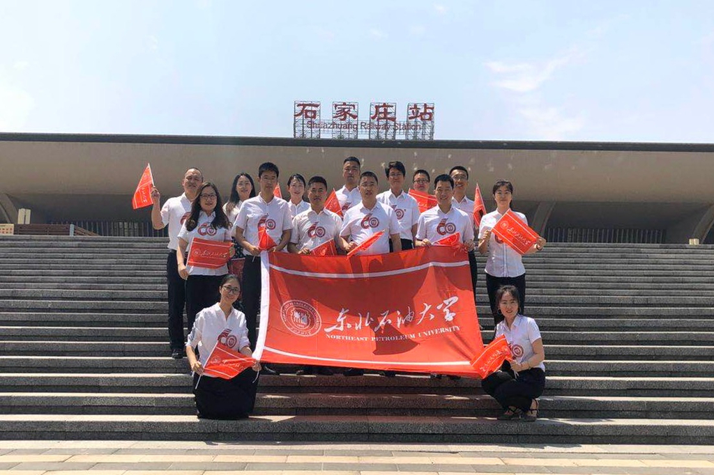 得知校旗传递到石家庄,校友们十分兴奋。“毕业15年了,为母校拍视频送祝福,我心中特别激动,唯一想法就是拍摄高质量的视频,把对母校的思念、祝福和感激都表达出来。”石家庄校友、市场营销专业2001级姜明泽说。校友们成立了活动筹划工作小组,设计活动流程、提前订做物料、编写脚本、精心选择拍摄场地,在西柏坡五大书记雕像、石家庄火车站和中国石油加油站为母校送上衷心的祝福:“甲子东油清,百年大学梦。艰苦创业,严谨治学,东油学子,不忘初心,牢记使命。我为祖国献石油,为伟大复兴中国梦加油,石家庄校友祝母校60年华诞生日快乐!”