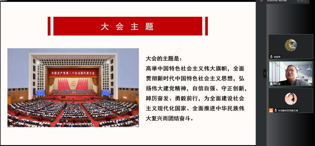 日前,秦皇岛校区特邀秦皇岛市委教育工委党的二十大精神宣讲团成员、燕山大学杨红星教授作党的二十大精神专题宣讲。宣讲以线上方式进行,校区全体学生工作者、学生干部、学生党员及入党积极分子416人参会。校区团委书记王禹主持会议。