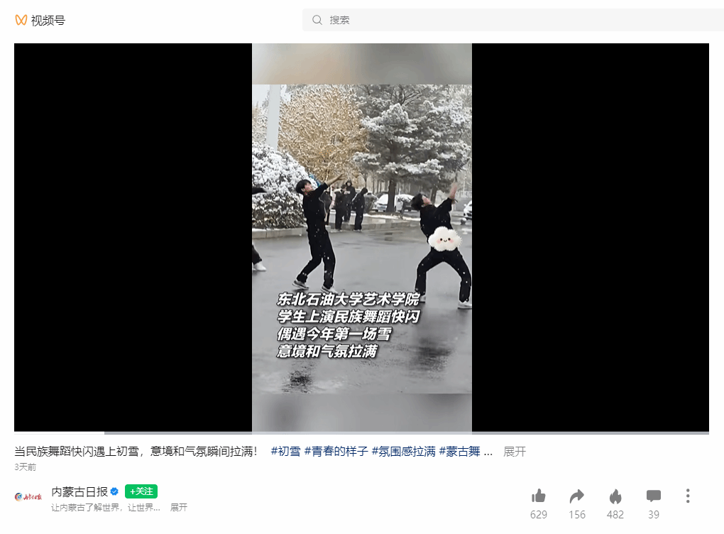 当前位置: 首页 - 媒体聚焦 - 正文 分享 返回 【内蒙古日报】当民族舞蹈快闪遇上初雪,意境和气氛瞬间拉满! 来源:东北石油大学主站 发布时间:2025-10-20访问次数: 2025年10月19日,内蒙古日报发布视频号:当民族舞蹈快闪遇上初雪,意境和气氛瞬间拉满! 上一条:【大庆日报】东北石油大学勇夺国际大学生地质锦标赛冠军 下一条:【黒龙江共青团】下雪基础,校友想回来上学的程度不基础!雪:我只是路过,你们继续卷!