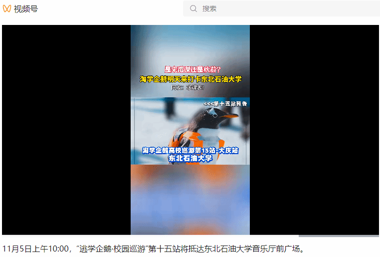 当前位置: 首页 - 媒体聚焦 - 正文 分享 返回 【微大庆】是来蹭课还是秋游?淘学企鹅明天来打卡东北石油大学 来源:东北石油大学主站 发布时间:2025-11-04访问次数: 2025年11月4日,微大庆视频号发布视频:是来蹭课还是秋游?淘学企鹅明天来打卡东北石油大学 上一条:【香港商报网】築牢高質量發展人才基石 為能源強國與龍江振興注入「東油力量」 下一条:【光明日报】东北石油大学马克思主义学院:“行走的思政课”实践教学
