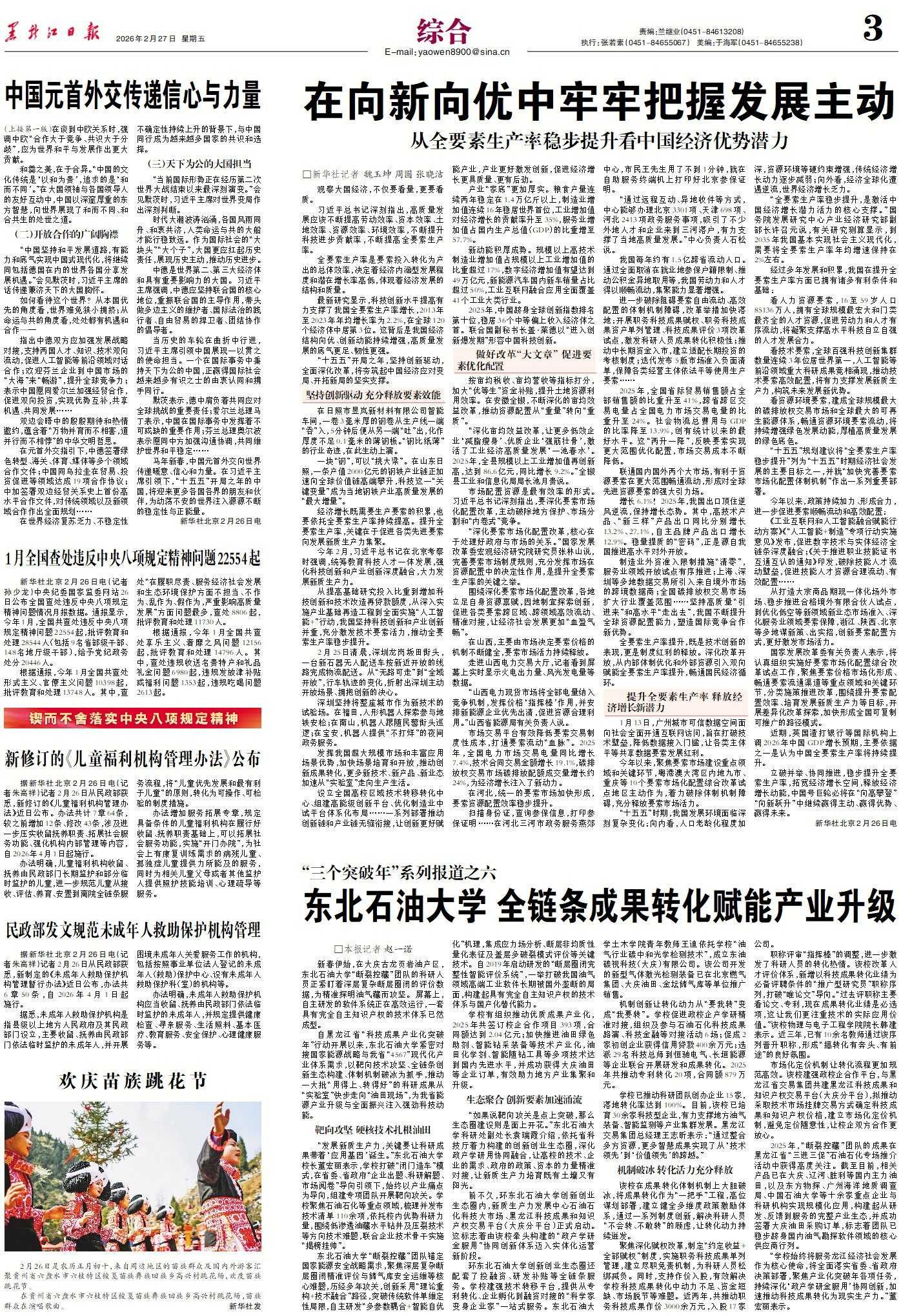 当前位置: 首页 - 媒体聚焦 - 正文 分享 返回 【黑龙江日报】“三个突破年”系列报道之六--东北石油大学 全链条成果转化赋能产业升级 来源:东北石油大学主站 发布时间:2026-03-02访问次数: 2月27日,《黑龙江日报》第3版以“‘三个突破年’系列报道之六--东北石油大学 全链条成果转化赋能产业升级”为题,报道我校科技成果转化工作。 上一条:【央广网】行稳致远开新局丨从冰天雪地到创新高地,“黑”土地如何焕新发力? 下一条:【新浪财经】东北石油大学 全链条成果转化赋能产业升级