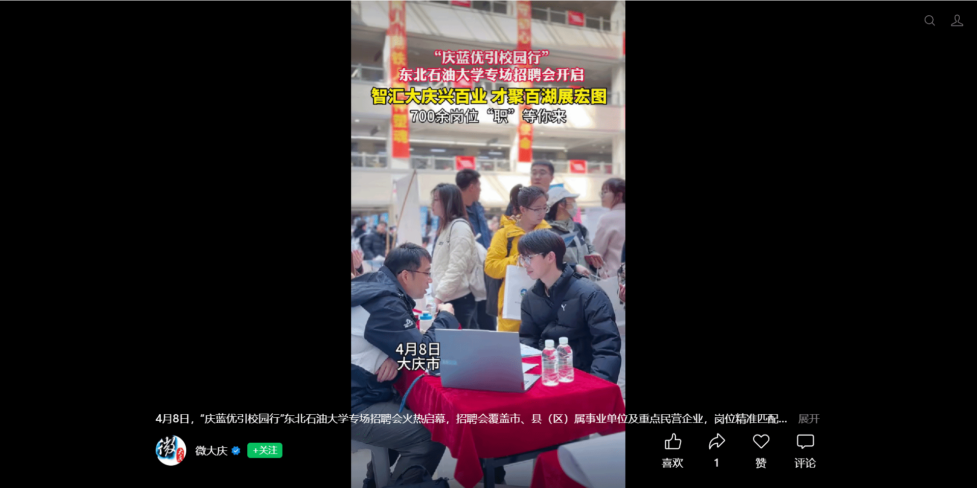 当前位置: 首页 - 媒体聚焦 - 正文 分享 返回 【微大庆】“庆蓝优引校园行”东北石油大学专场招聘会开启 来源:东北石油大学主站 发布时间:2026-04-08访问次数: 4月8日,微大庆发布视频:“庆蓝优引校园行”东北石油大学专场招聘会开启。 下一条:【黑龙江日报】大庆精神(铁人精神)内蕴的政绩观