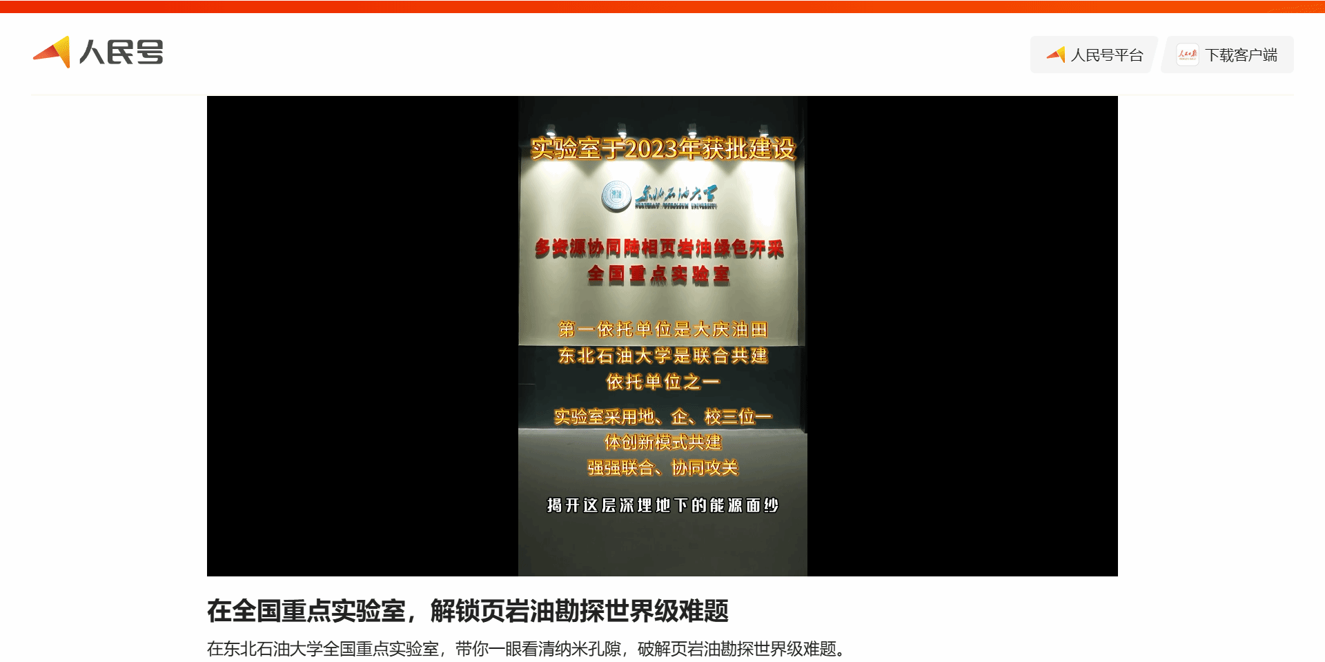 当前位置: 首页 - 媒体聚焦 - 正文 分享 返回 【人民日报】在全国重点实验室,解锁页岩油勘探世界级难题 来源:东北石油大学主站 发布时间:2026-04-13访问次数: 4月12日,《人民日报》发布视频:在全国重点实验室,解锁页岩油勘探世界级难题。在东北石油大学全国重点实验室,带你一眼看清纳米孔隙,破解页岩油勘探世界级难题。 上一条:【人民日报视界】在东北石油大学全国重点实验室,带你一眼看清纳米孔隙,破解页岩油勘探世界级难题。 下一条:【大庆融媒体】智汇大庆 才聚百湖|“庆蓝优引校园行”东北石油大学专场招聘会火热开启
